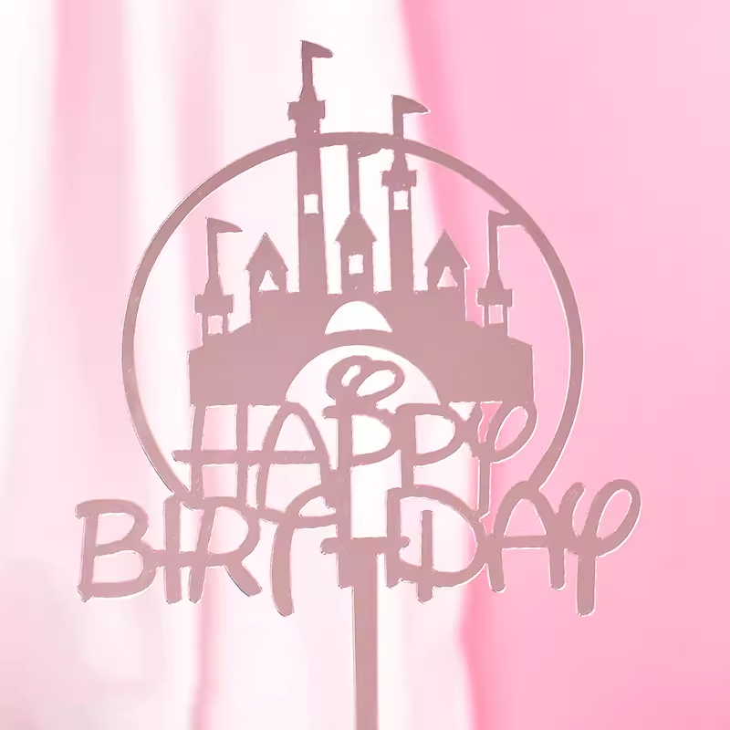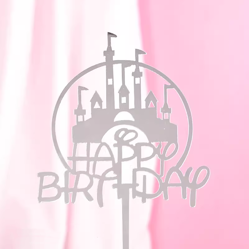 亚克力城堡插件 金色/银色/玫瑰金色 城堡HAPPYBIRTHDAY装饰插件插牌 1支装