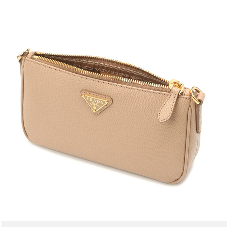 PRADA 普拉达 女士 Identity Saffiano 皮革三角形饰有金属刻字徽标斜挎单肩包 粉色 1BH171 NZV F0MUH IOO