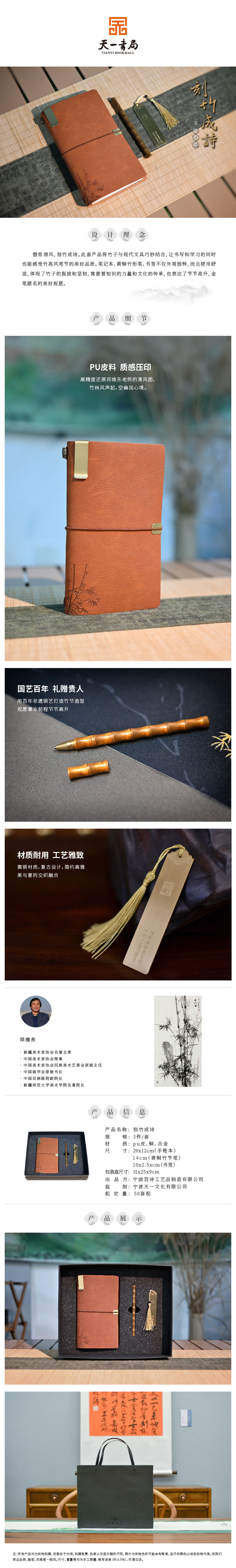 羽诗制造出品 刻竹成诗笔记本黄铜竹节笔黄铜书签礼盒套装