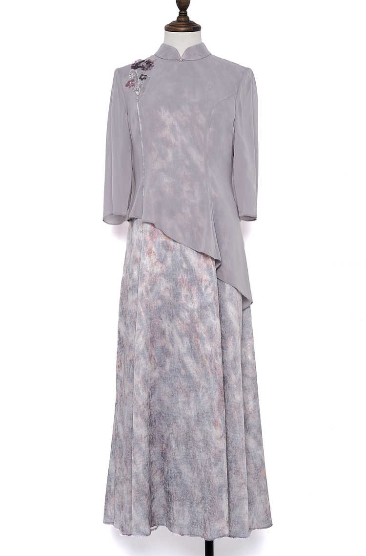 吉祥衣家新中式国风新款裙子气质修身显瘦女装银玥海棠连衣裙女夏