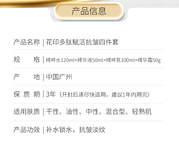 花印多肽赋活抗皱4件套(水+乳+精华+面霜)