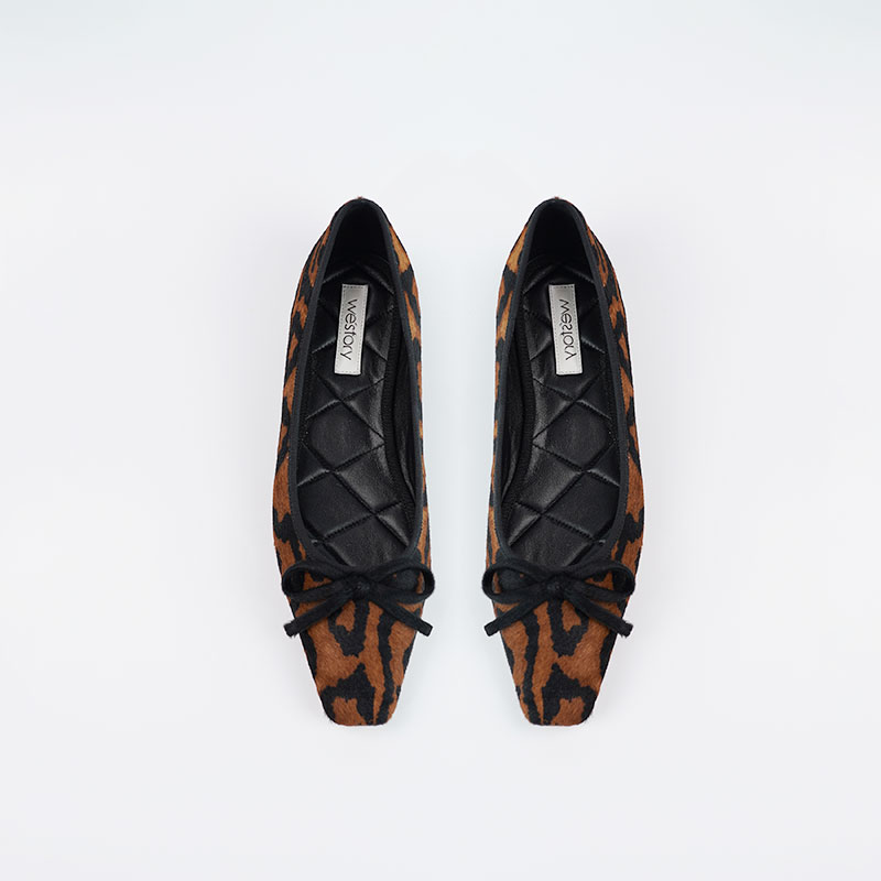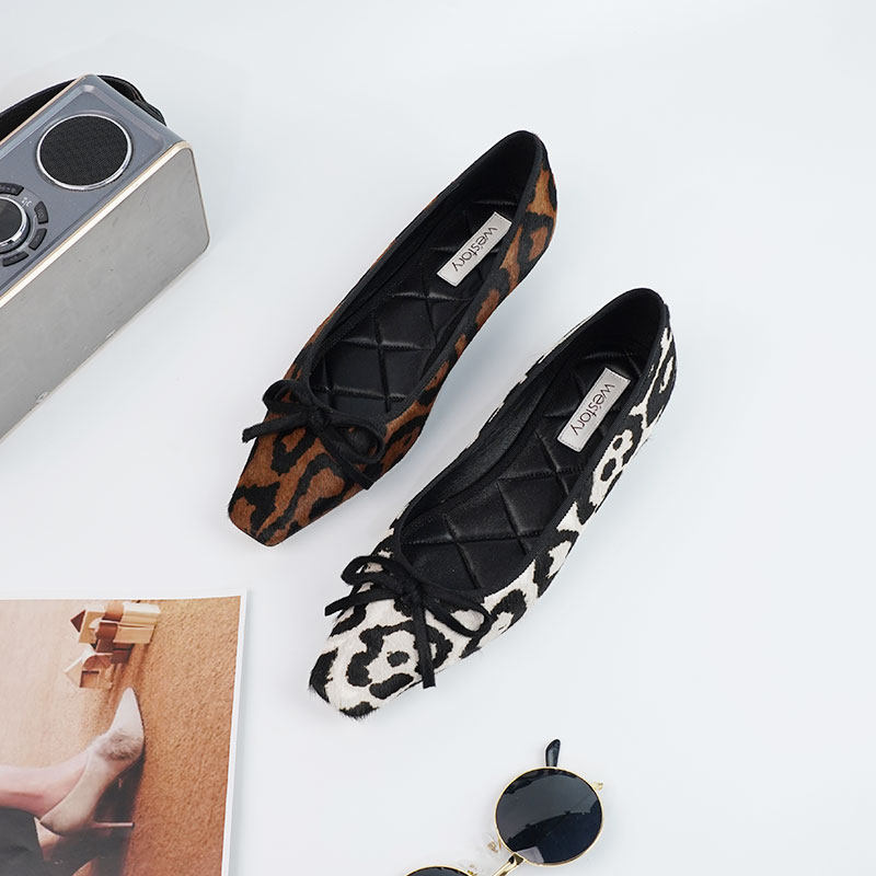Westory2025年秋季方头豹纹平底单鞋休闲通勤百搭浅口单鞋W25CE75801