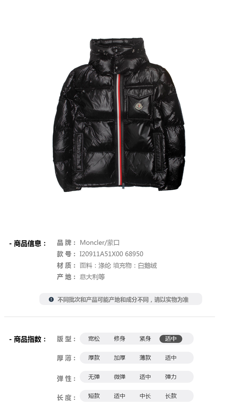 【现货预定款】Moncler Montbeliard短款男士 90% 白鹅绒羽绒服夹克外套 I20911A51X00