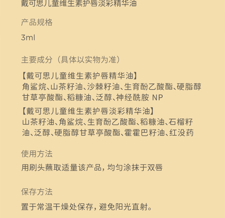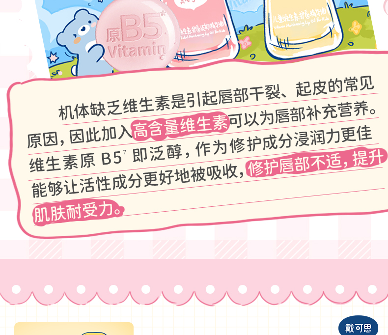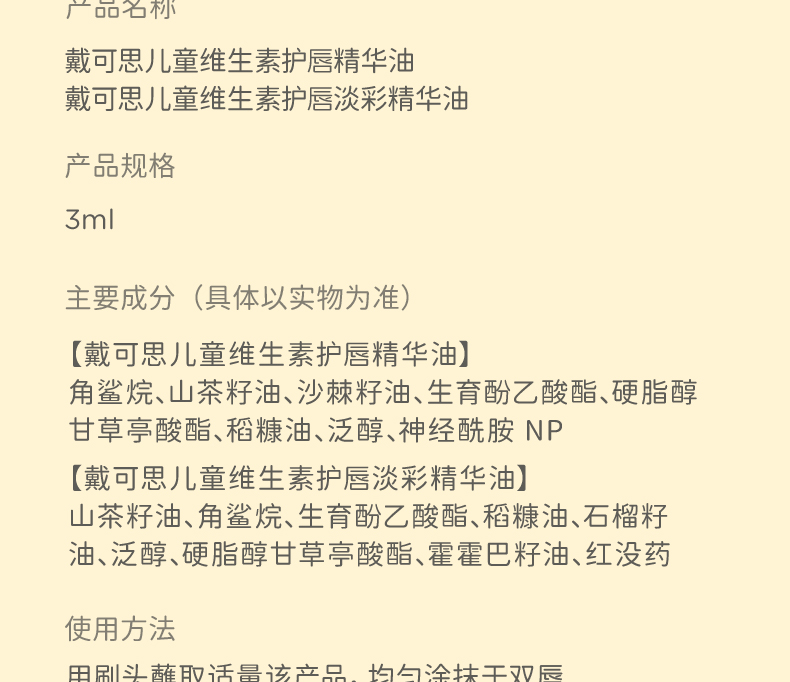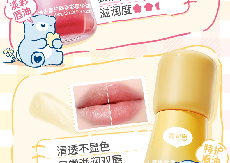戴可思儿童护唇油淡彩唇蜜维生素保湿滋润唇膏♥