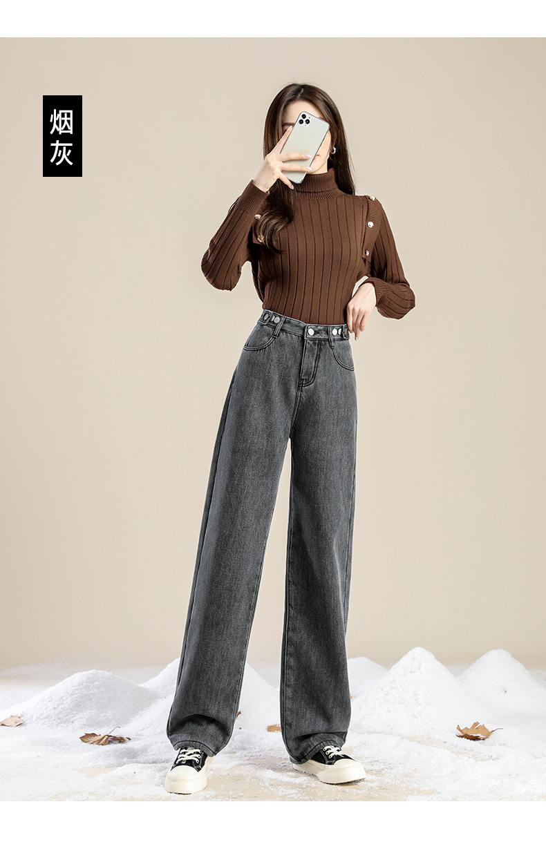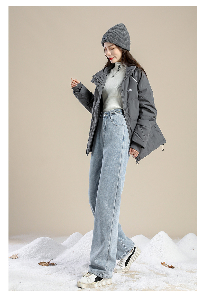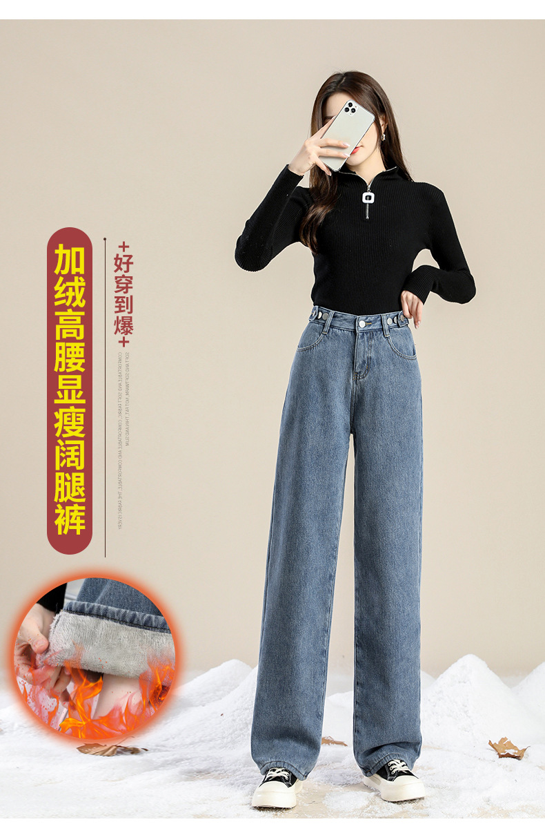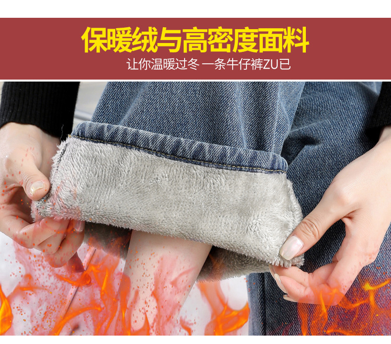 【积分兑换】加绒牛仔裤女秋冬新款小个子直筒长裤女款韩版大码加厚宽松阔腿裤