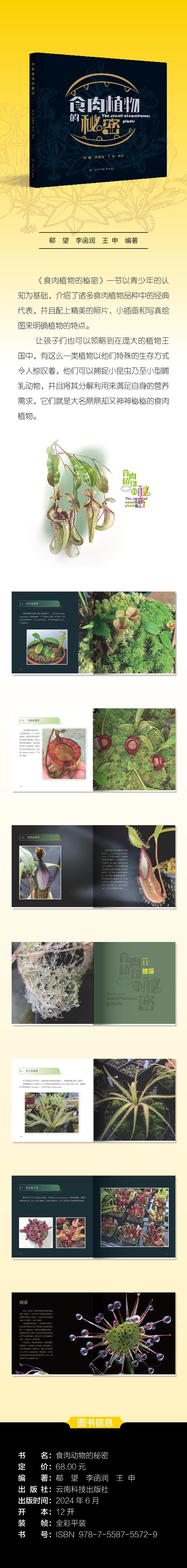 本书收录很多种食虫植物,以每个属或具体物种的地理分布热点作为介绍逻辑,包括东南亚的高海拔和低海拔地区,澳大利亚的北领地和西南地区,到北美洲的东南沿海,中美洲的喀斯特地区,南美洲的旧冈瓦纳超大陆残余和高海拔地区,又至南非的西南沿海地区等介绍,将这些神秘物种展现给大家,一起惊叹大自然的造物,同时让热爱食肉植物的儿童、青少年们能够有一个基础认知去支持自己的爱好,享受种植的成就和喜悦,一起享受自然、保护自然、分享快乐。