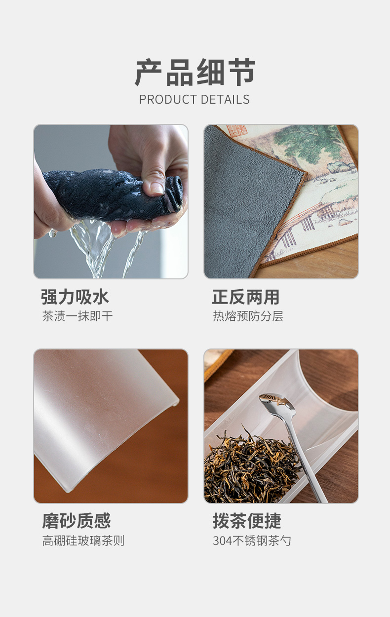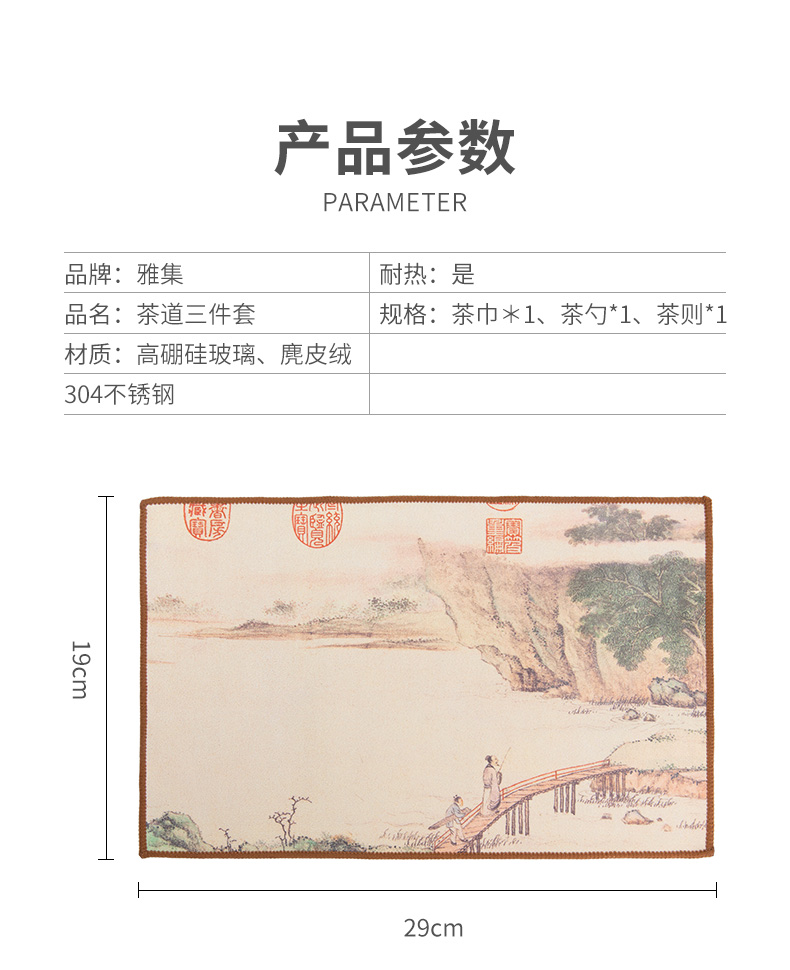 雅集组合装简约中式茶道三件套(磨砂茶则/B+茶勺/访友吸水茶巾)