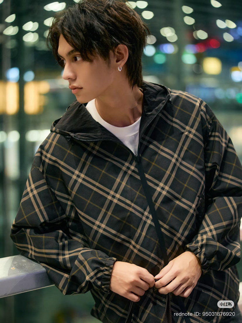 125-8 渠道圆正 客供面料 双面穿夹克外套 格子/纯色 男士连帽休闲外套 花一个钱得两件