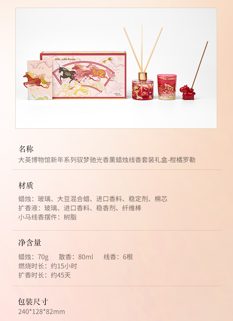 大英博物馆 新年系列 驭梦驰光 香薰蜡烛线香套装礼盒-柑橘罗勒