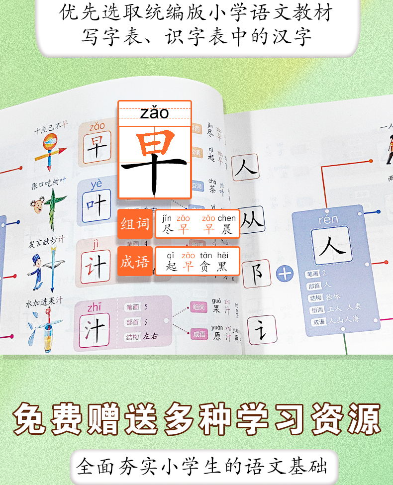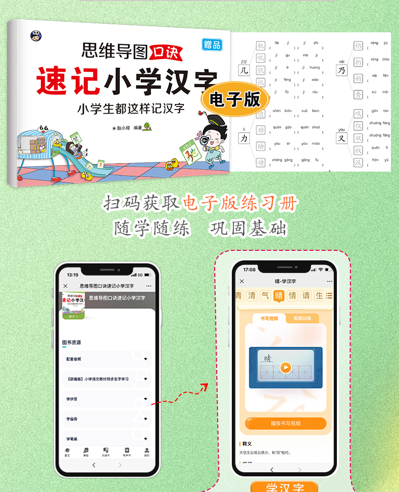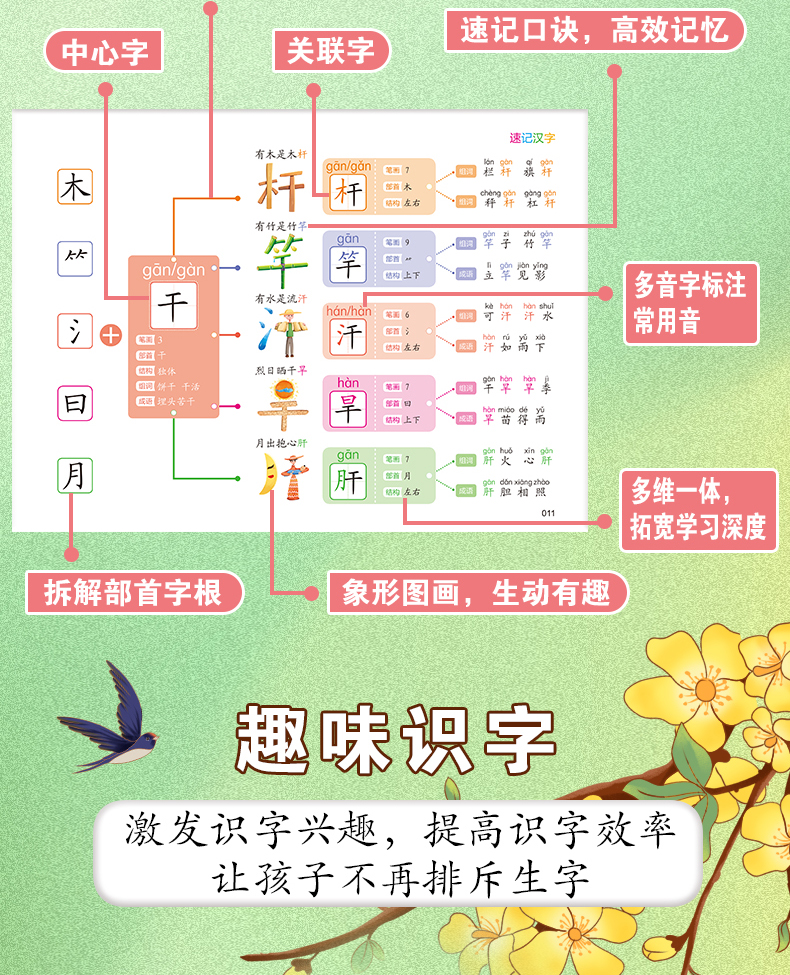 思维导图口诀速记小学汉字秒记通用识字速记汉字通用象形图画汉字书语文科目