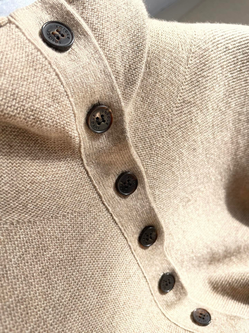 126-5 纯圆正 原色紫绒 百分百山羊绒 立领排扣 堆堆领 针织罩衫