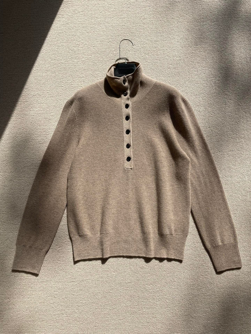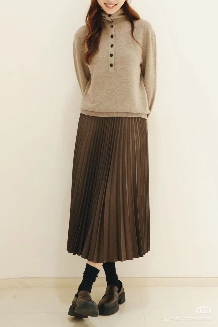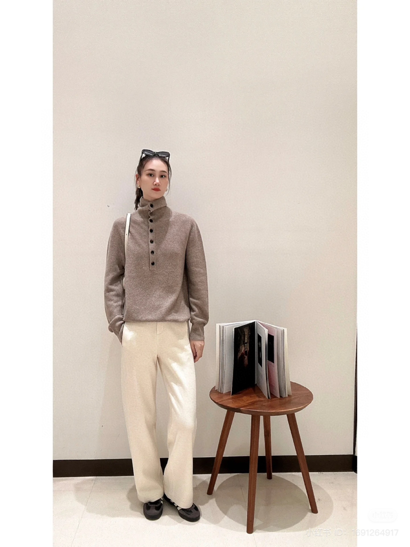 这类针织在秋冬是极为刚需的,你们衣橱里那些个大衣羽绒,如果想尽量保持领口的清洁,这种半高领小堆领的毛衣打底可要多准备一些