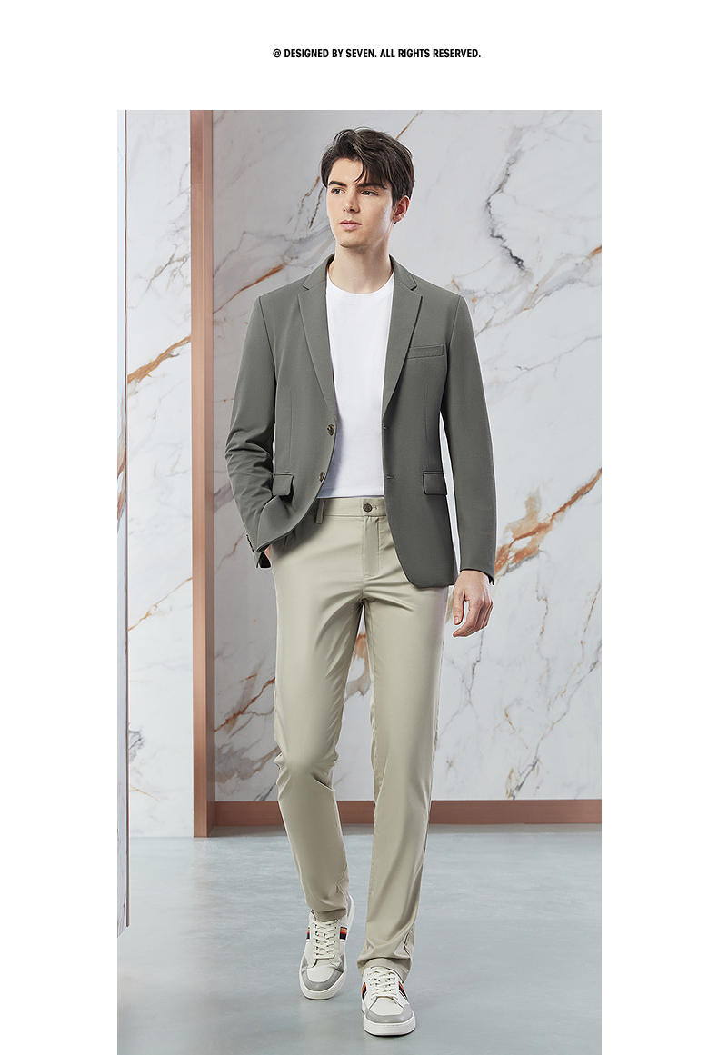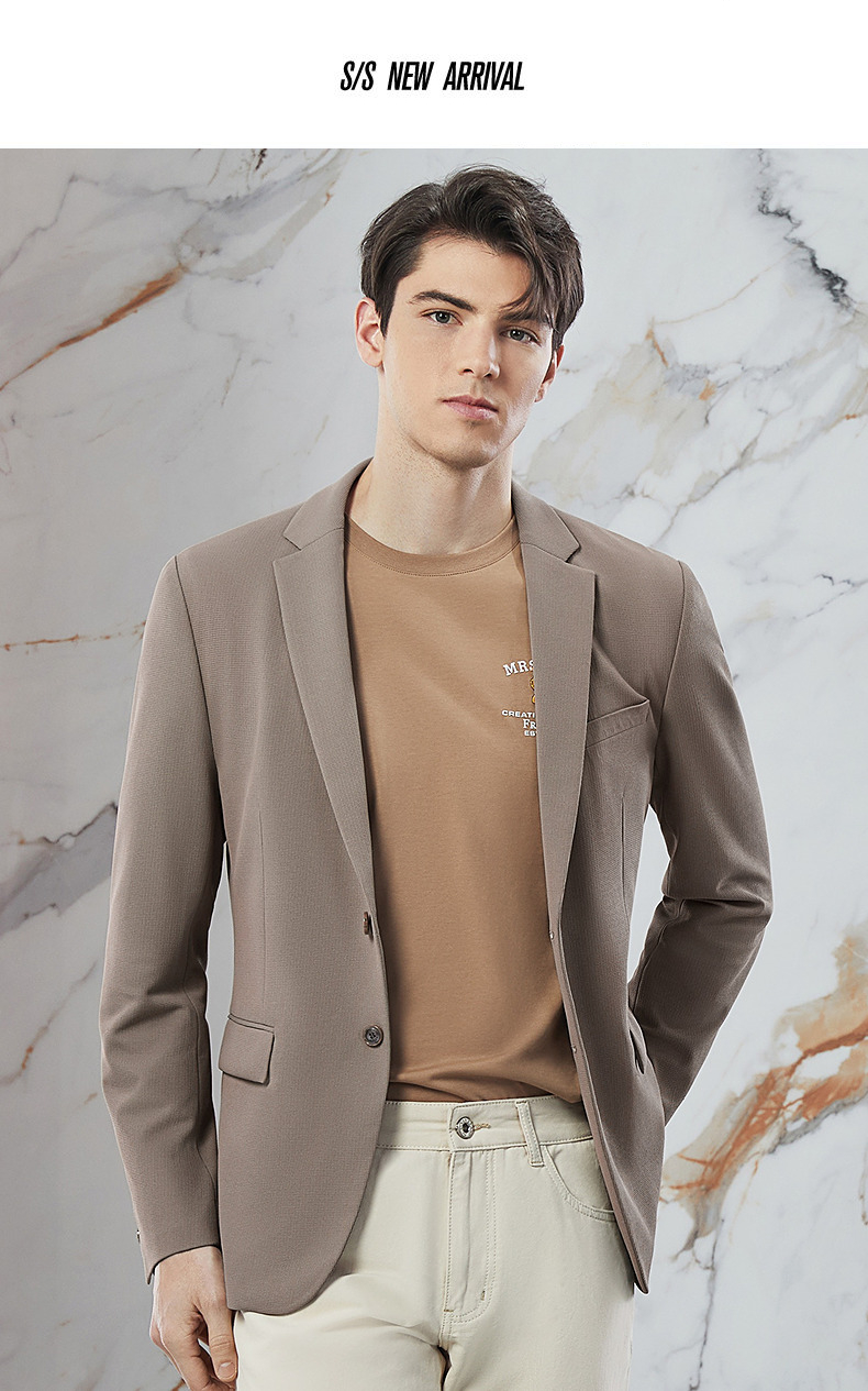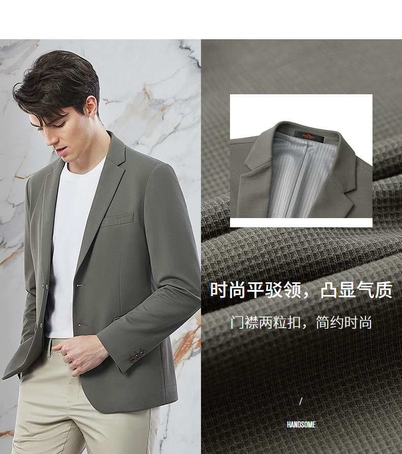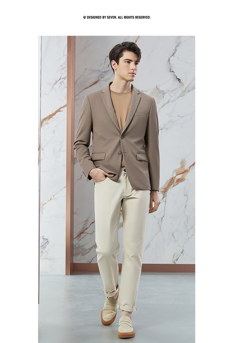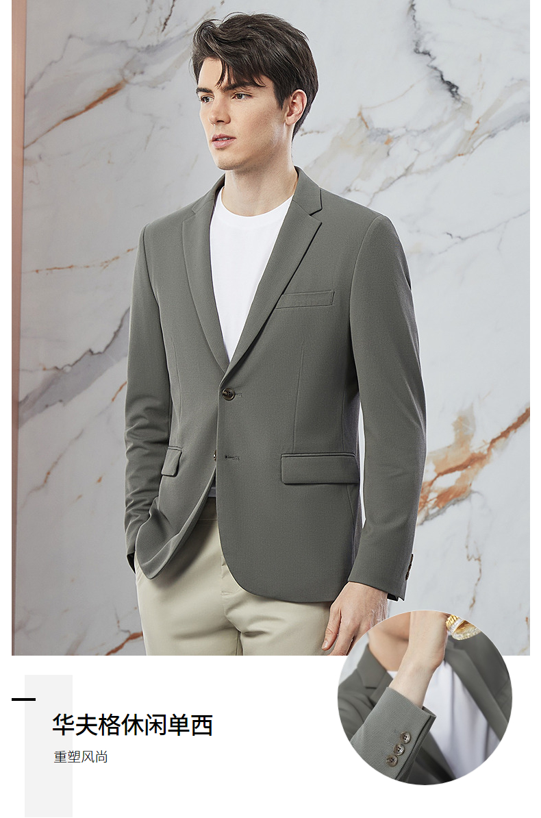 【华夫格】柒牌休闲西服男2024春季新款商务平驳领男士单西装外套 126C70410