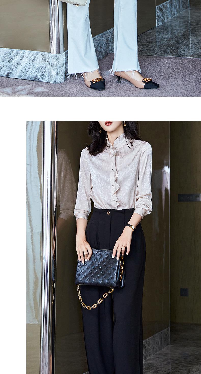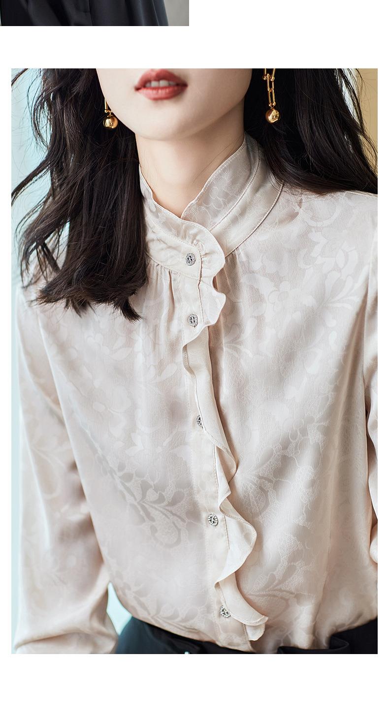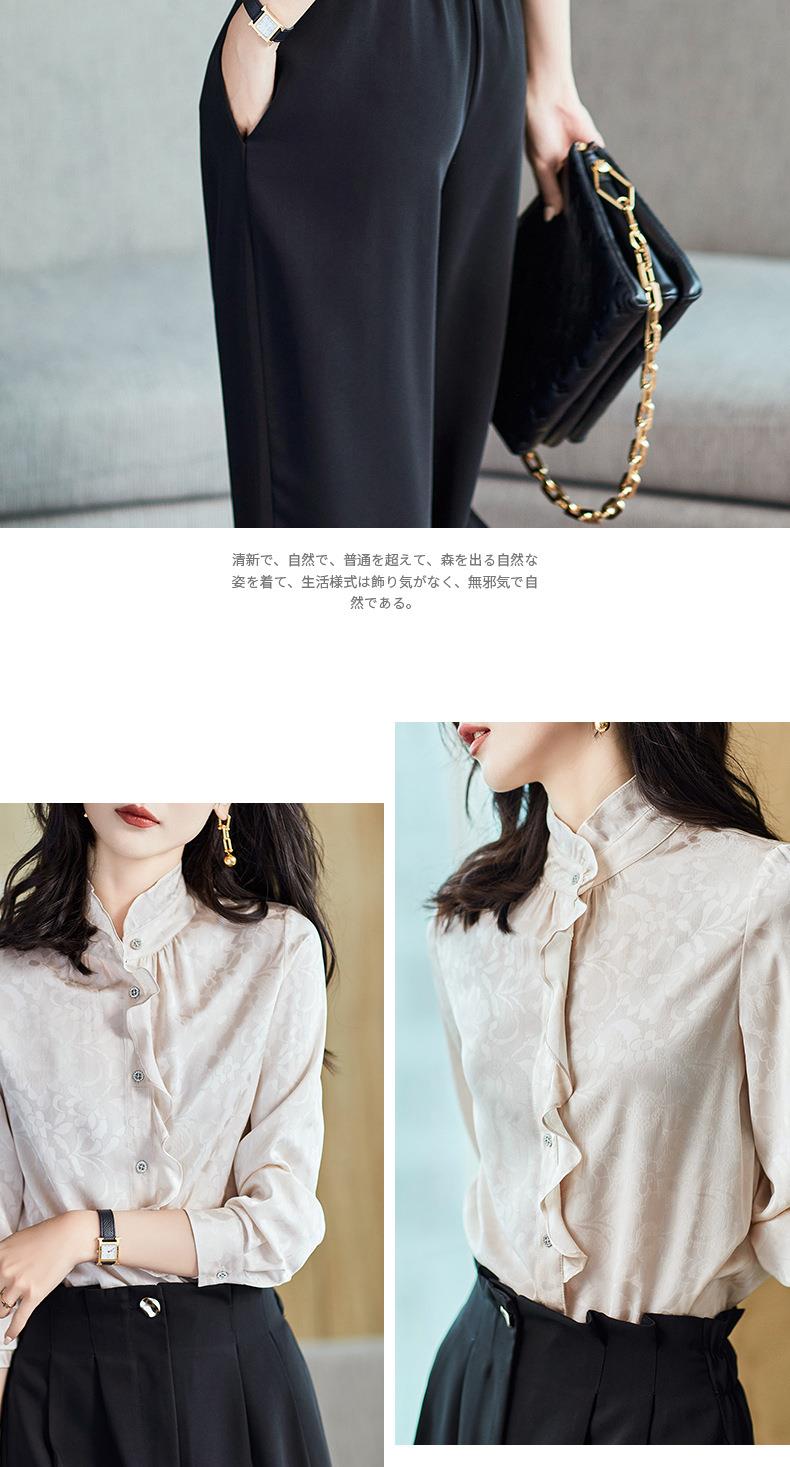 2023秋装新款衬衫女长袖宽松雪纺衫纯色女士衬衣A2373