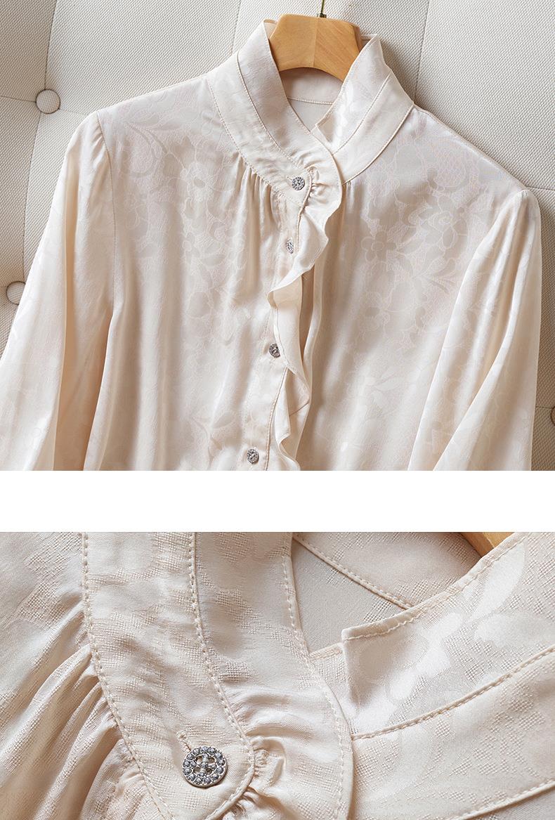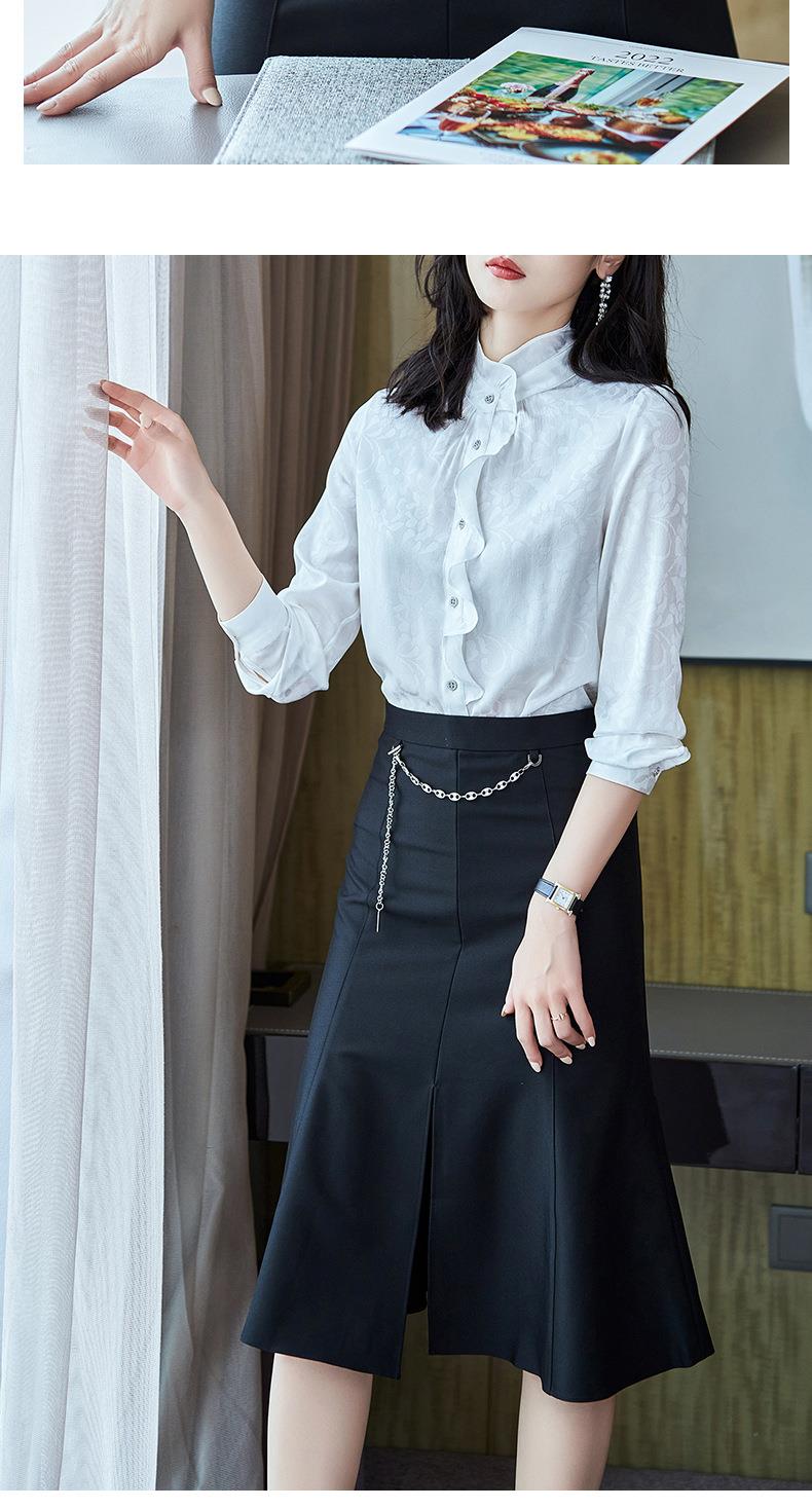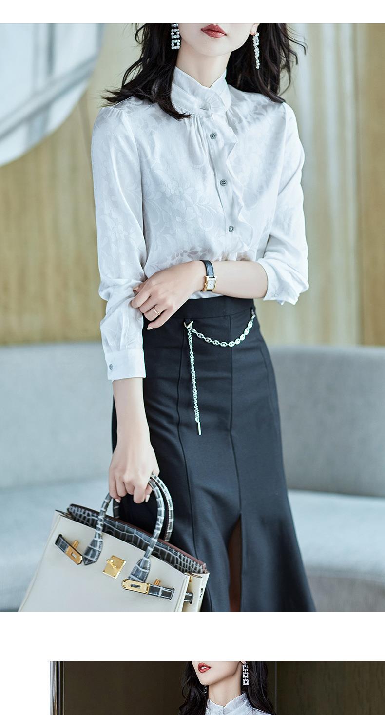 2023秋装新款衬衫女长袖宽松雪纺衫纯色女士衬衣A2373