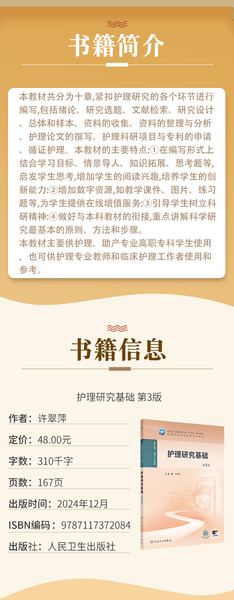 护理研究基础 第3版三版 十四五规划教材全国高等职业教育专科教材 许翠萍主编 供护理 助产专业用 9787117372084人民卫生出版社