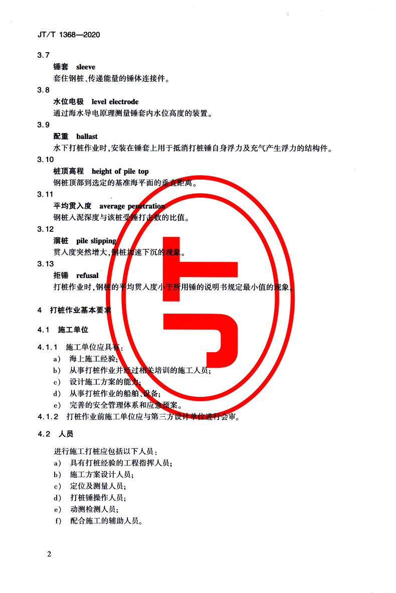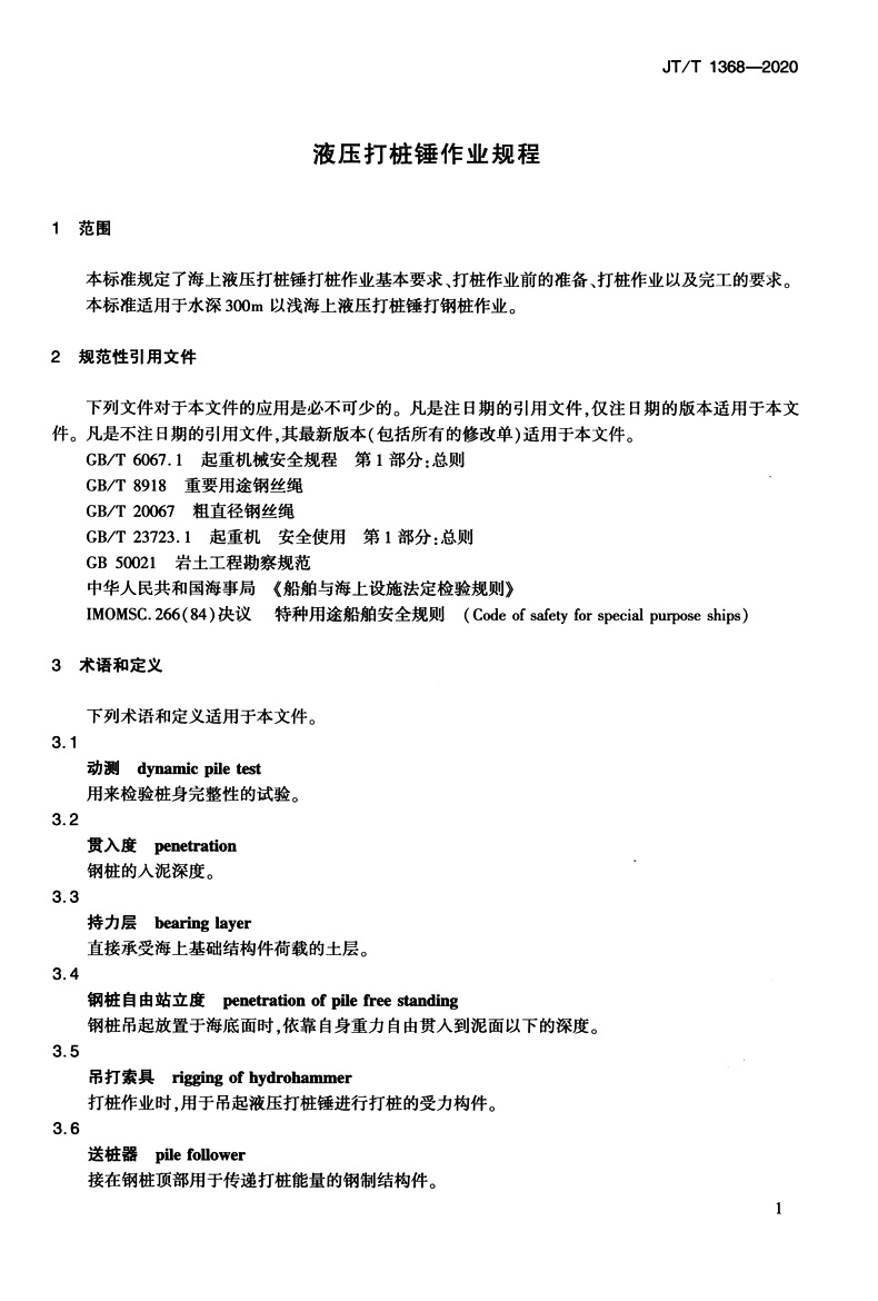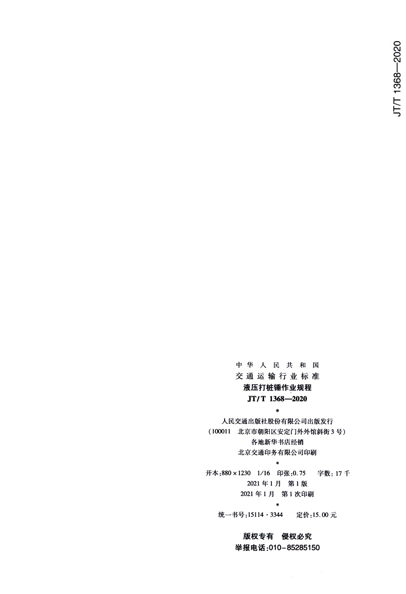书名:液压打桩锤作业规程(JT/T 1368—2020)
