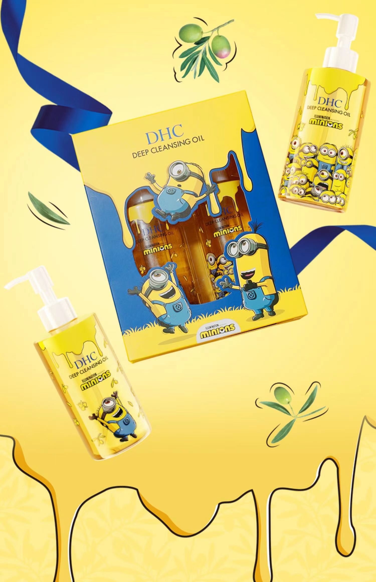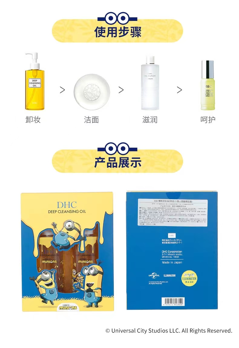 1F【DHC】3瓶 DHC卸妆油小黄人礼盒 DHC橄榄卸妆油2瓶组+DHC橄榄卸妆油200mL 赠DHC紧致焕采润白霜试用装x5片