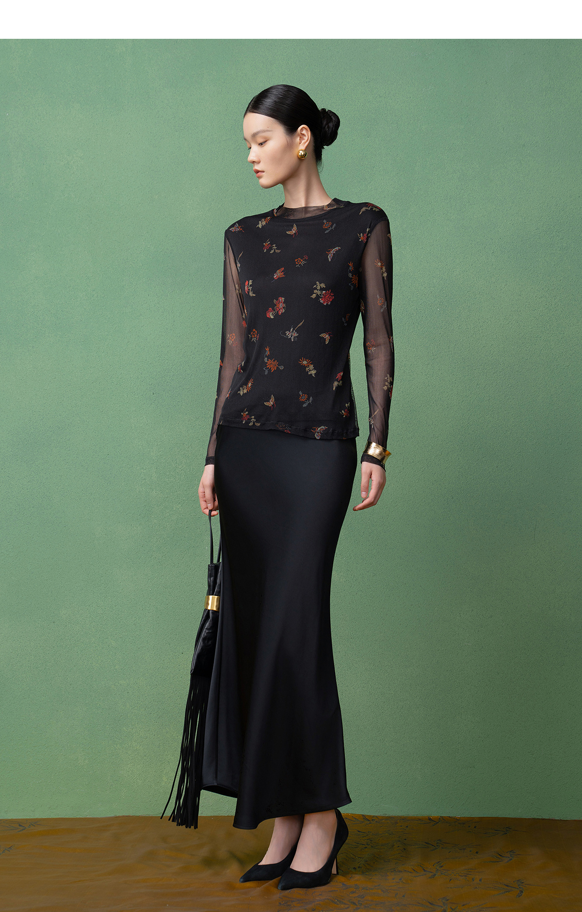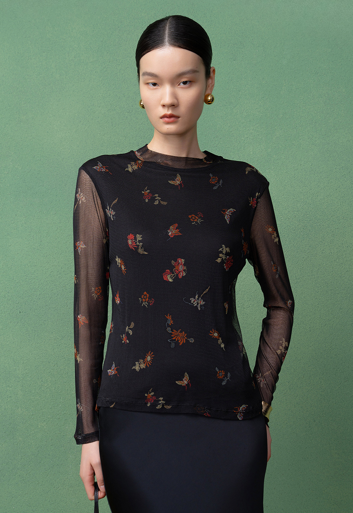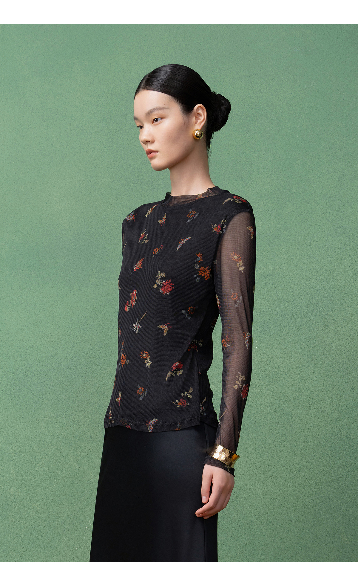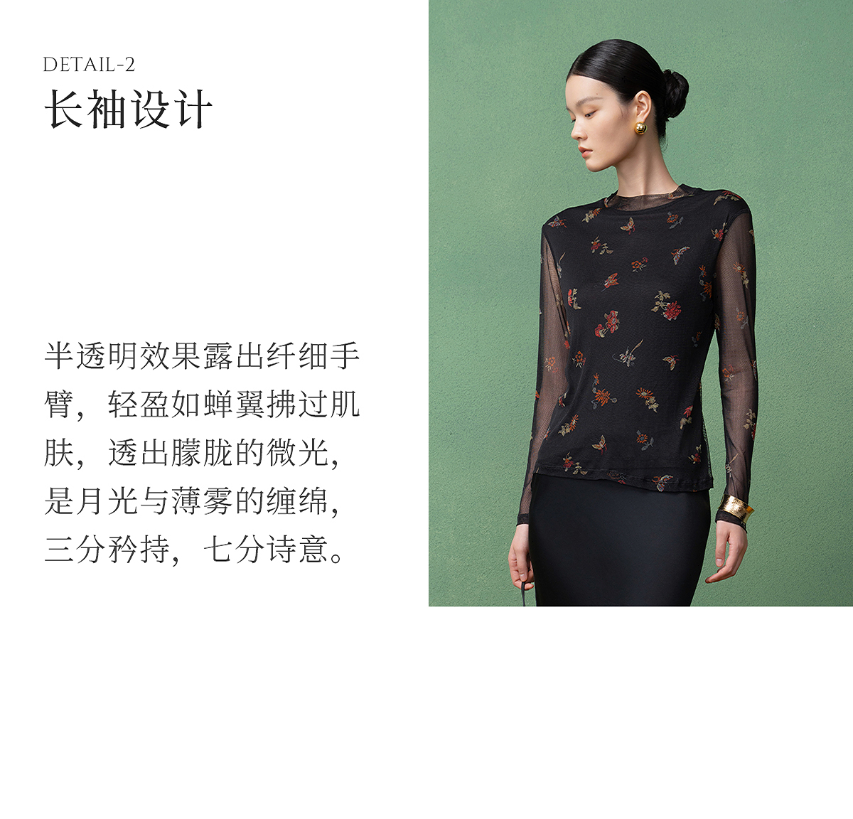 【林栖设计小店】暗香真丝上衣皮肤衣印花透气25早秋新款桑蚕丝长袖女1953109