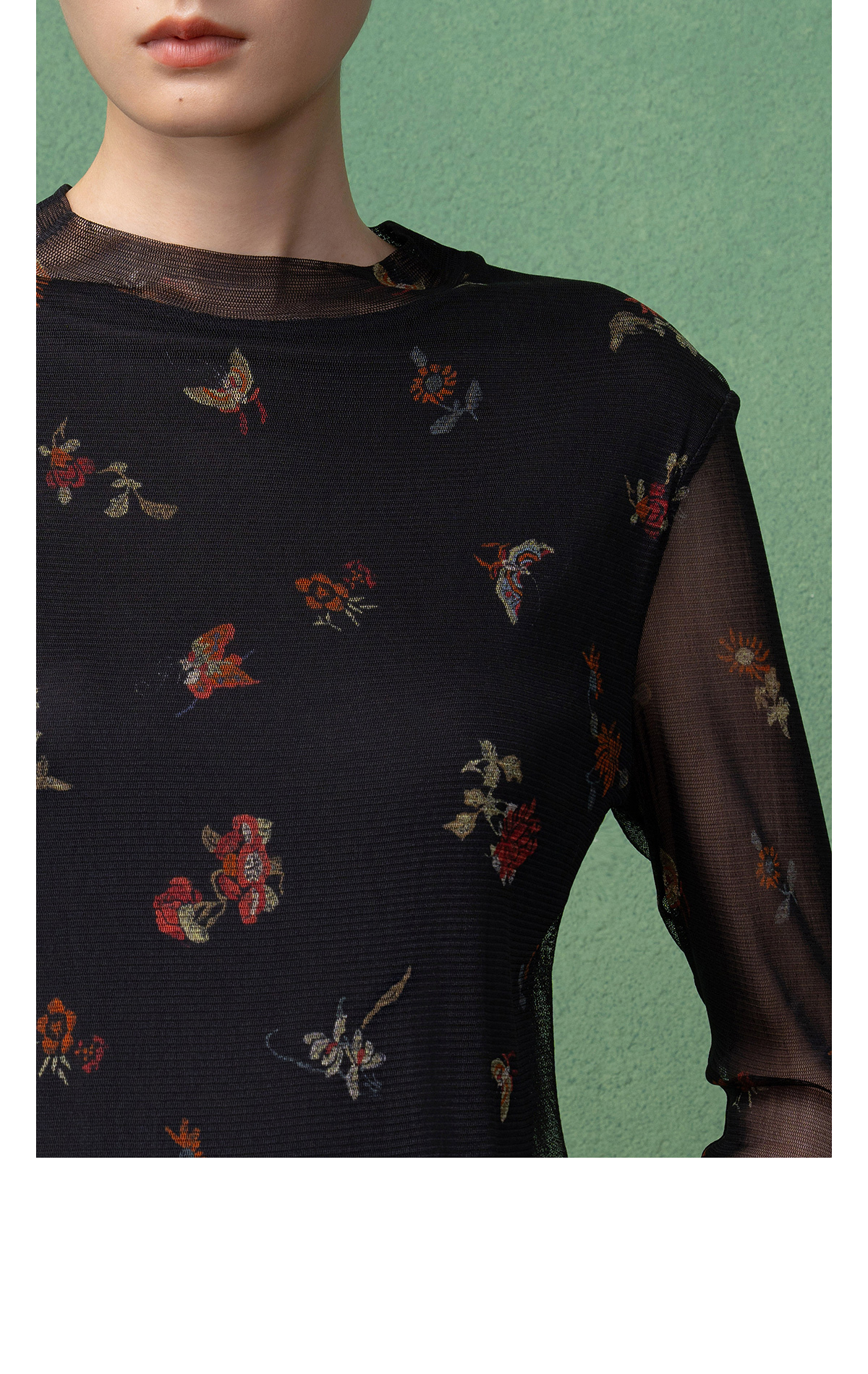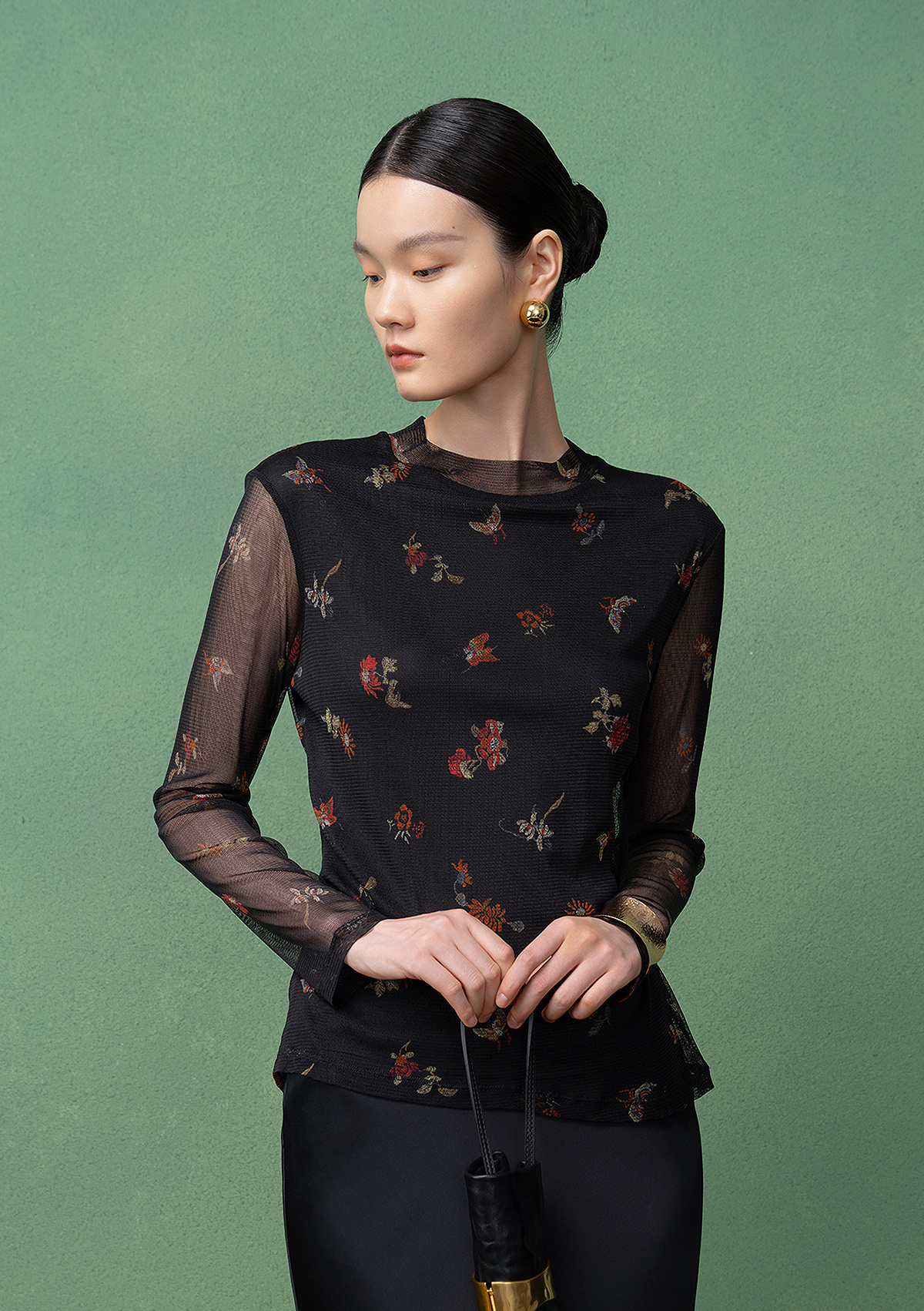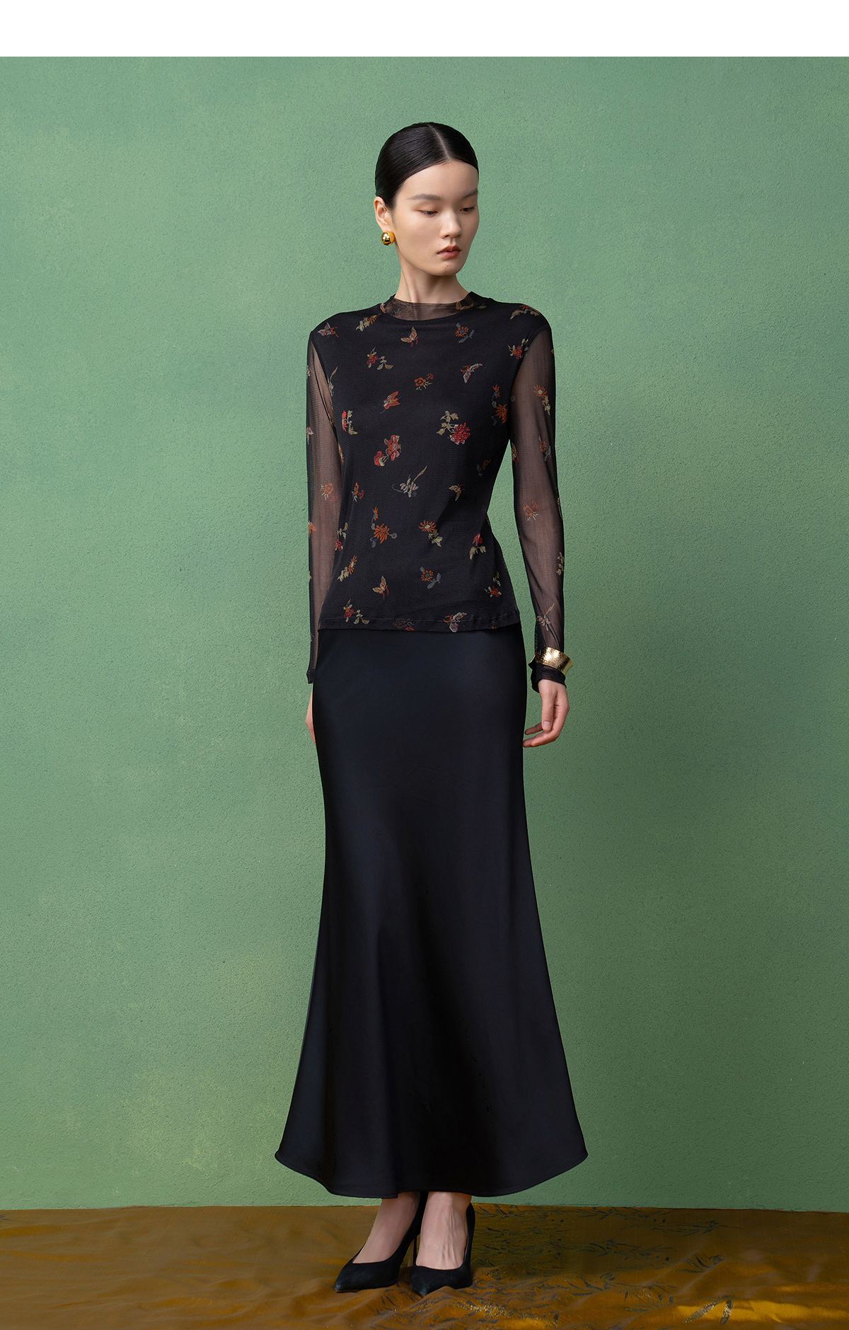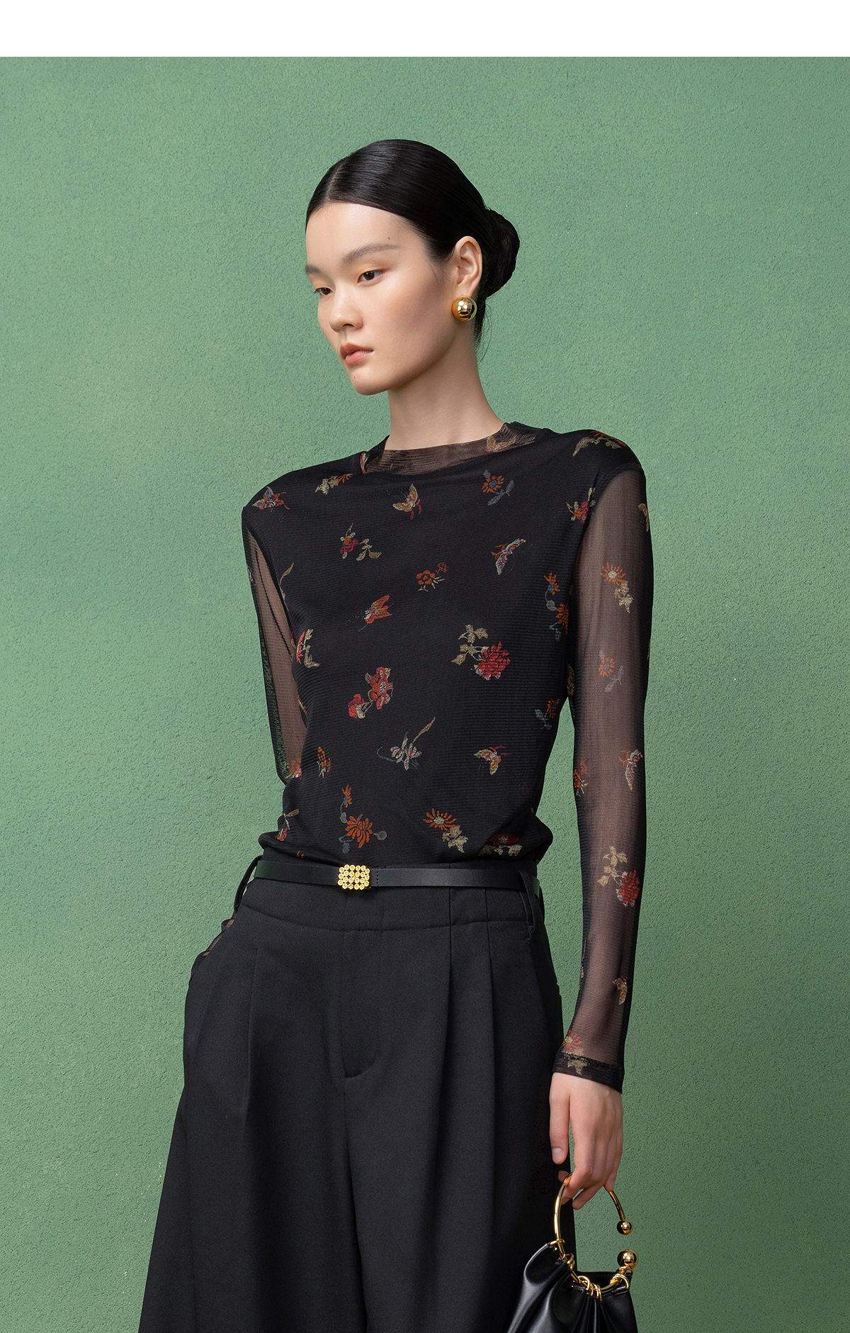 【林栖设计小店】暗香真丝上衣皮肤衣印花透气25早秋新款桑蚕丝长袖女1953109