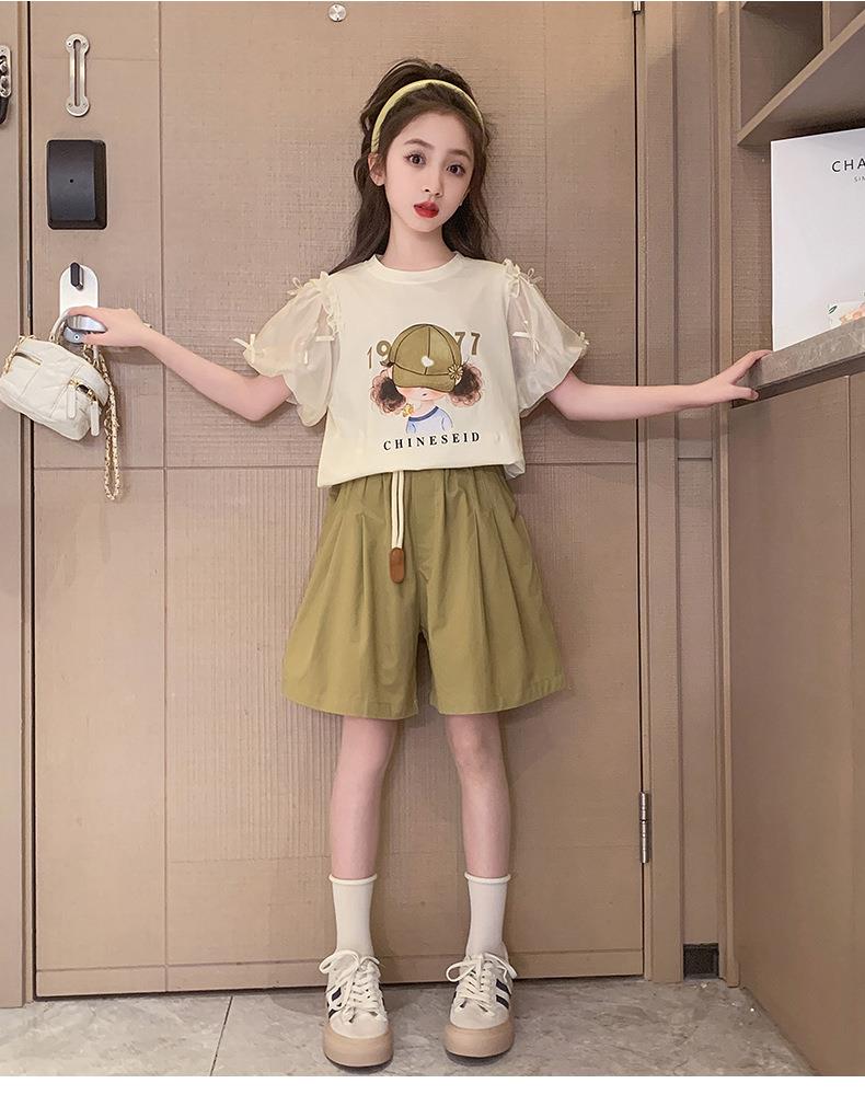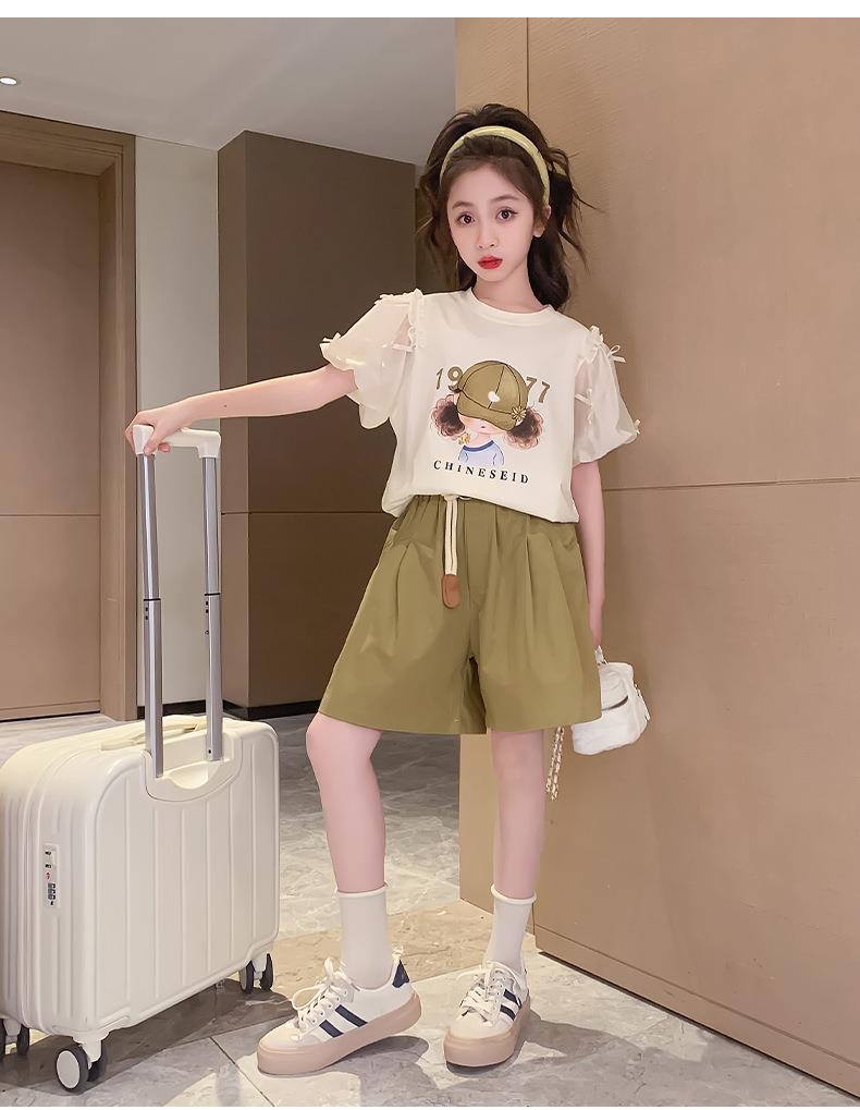 女童夏装短袖套装2023新款网红洋气童装夏季短裤两件套儿童衣服夏