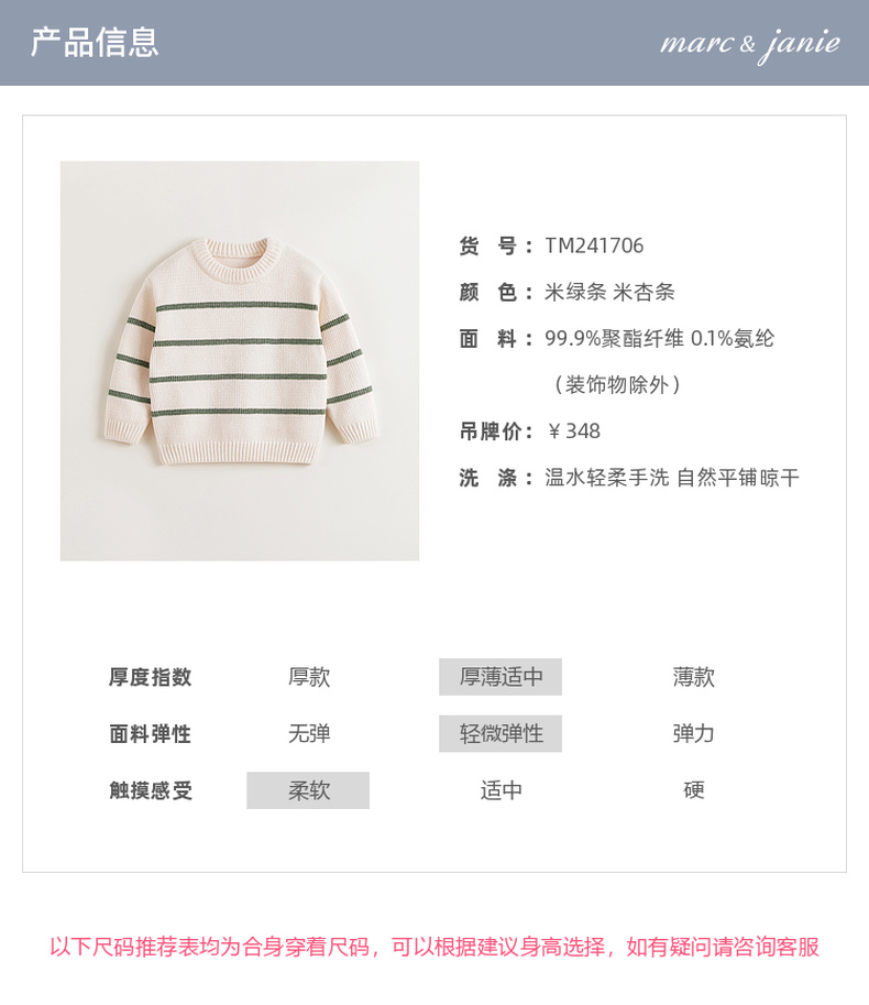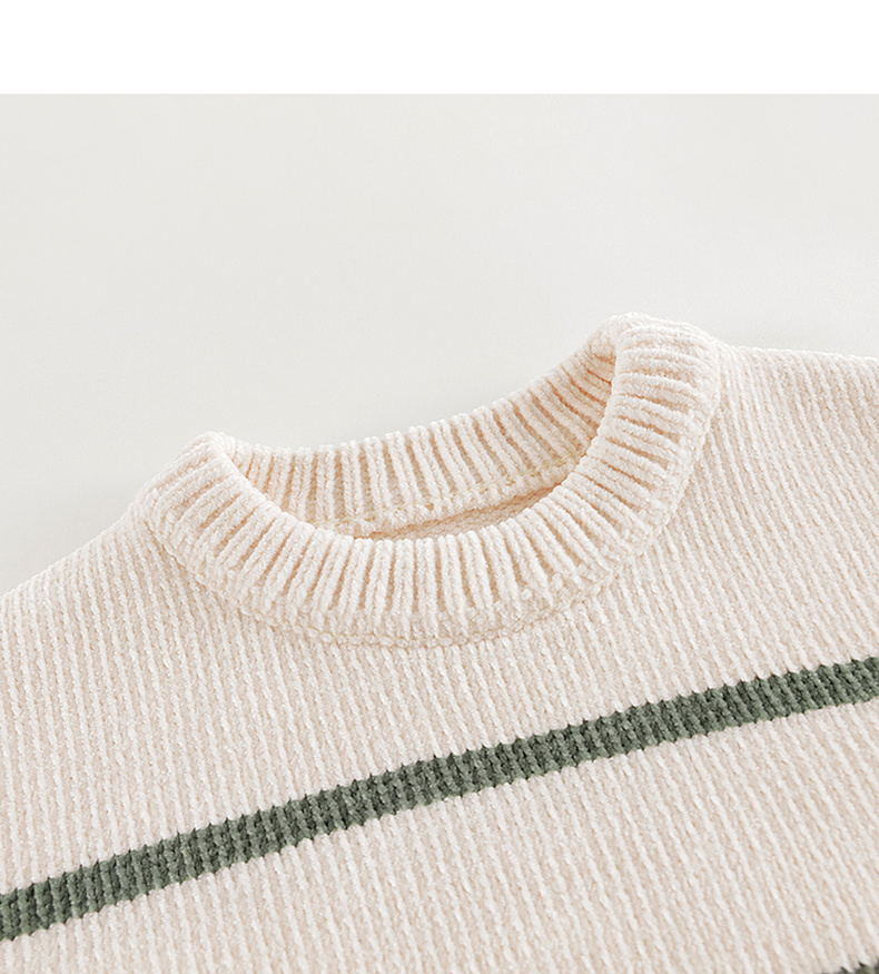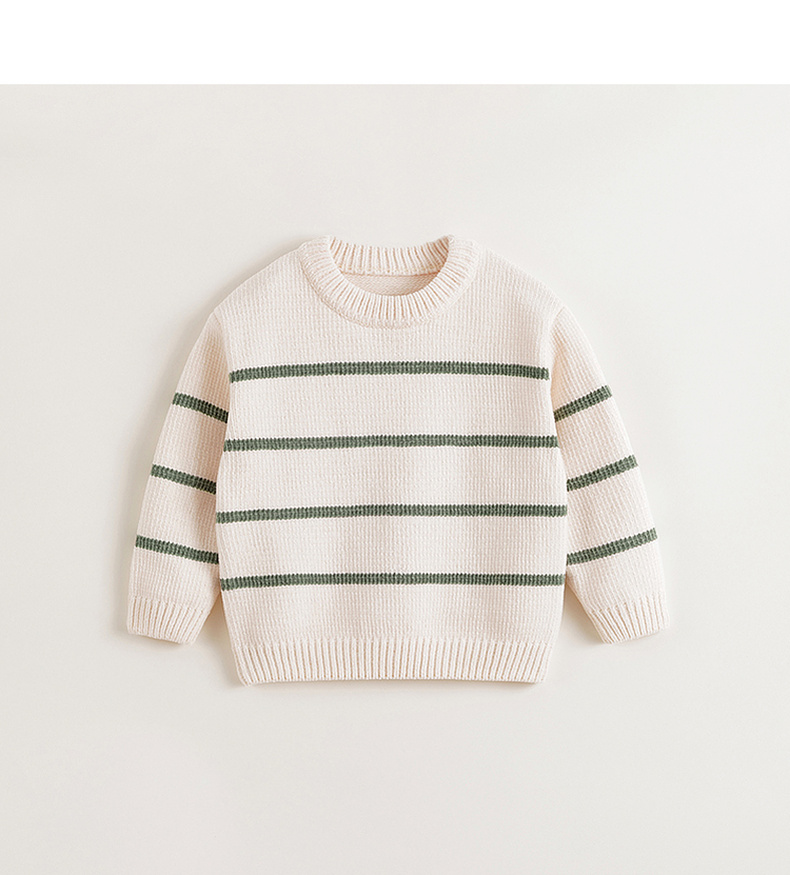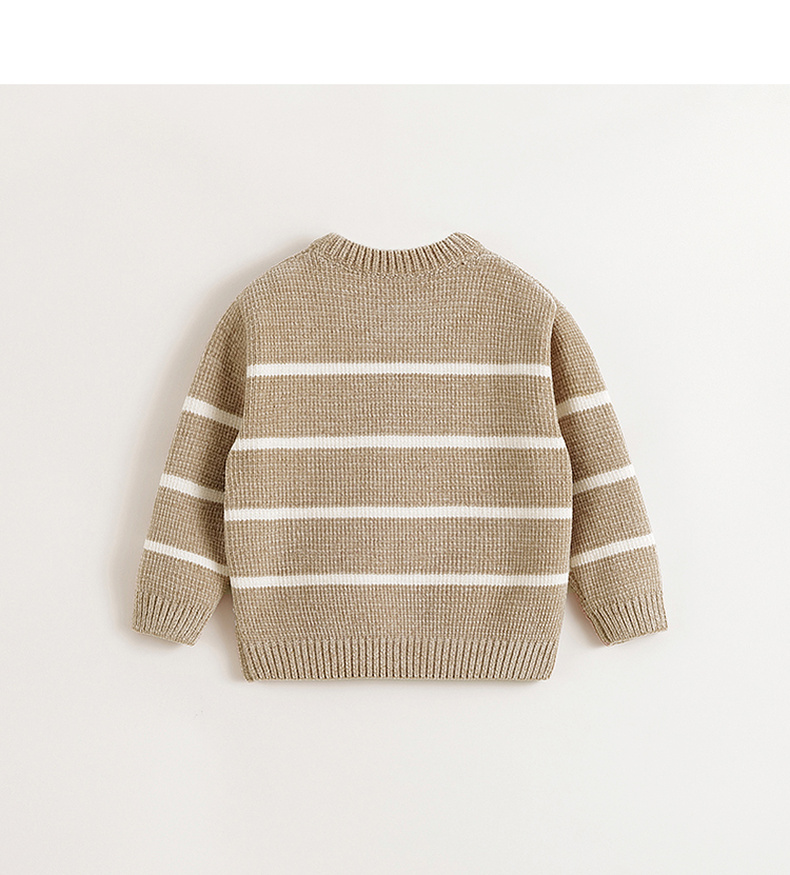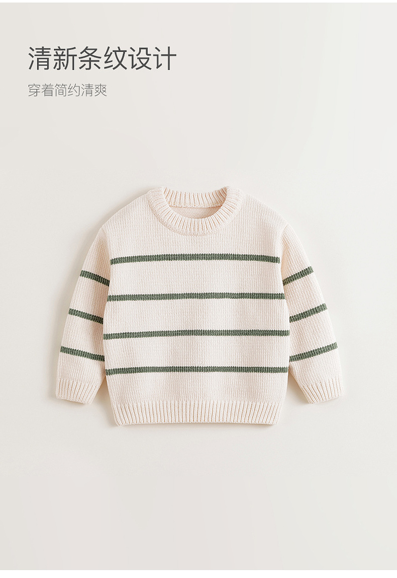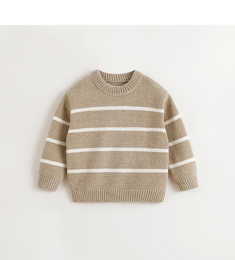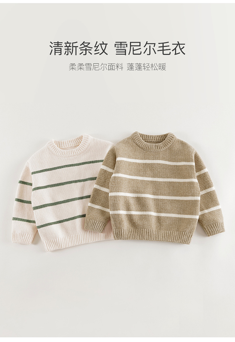 马克珍妮男童休闲条纹雪尼尔毛衣儿童针织衫2024年秋冬新款241706