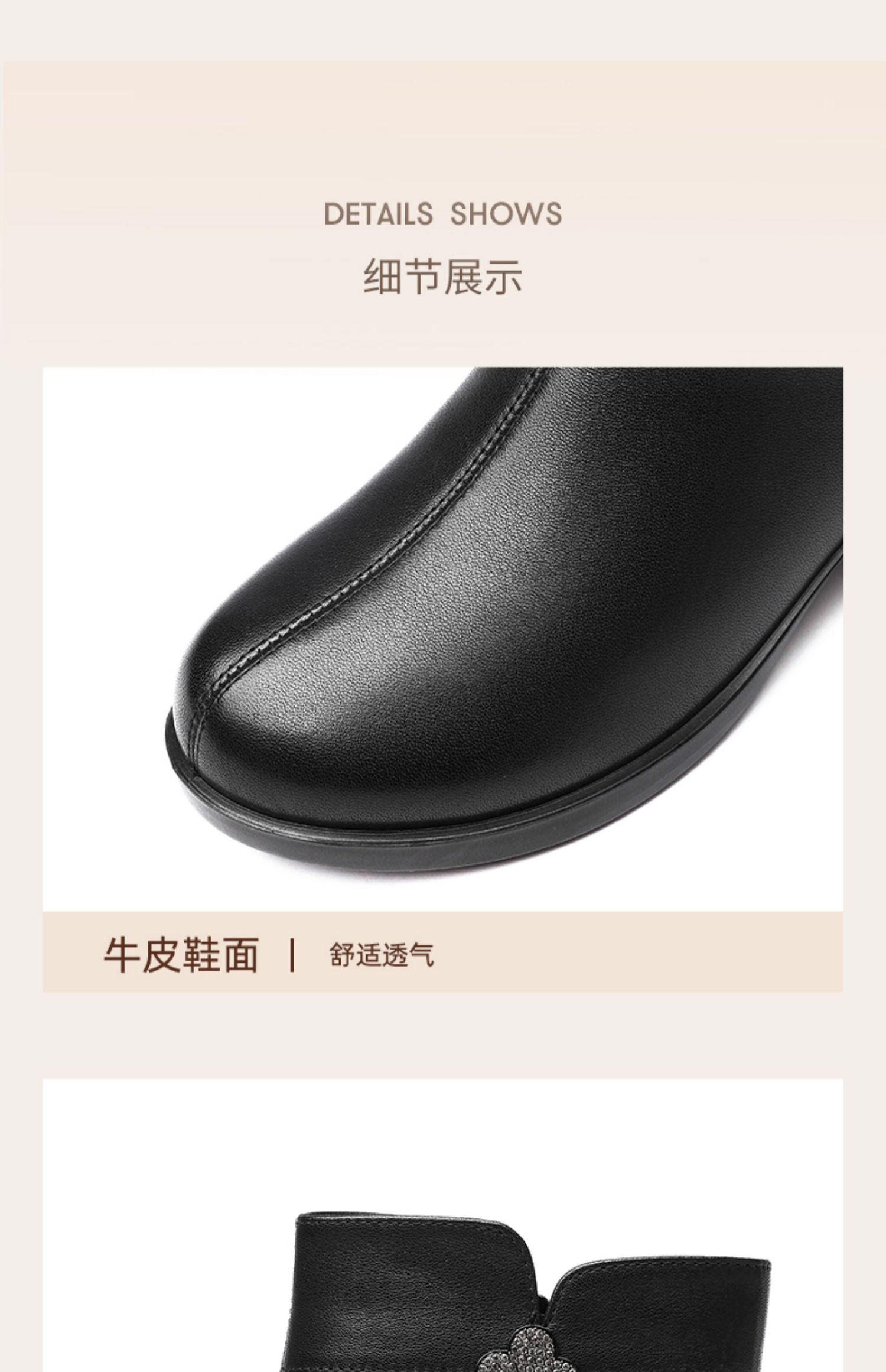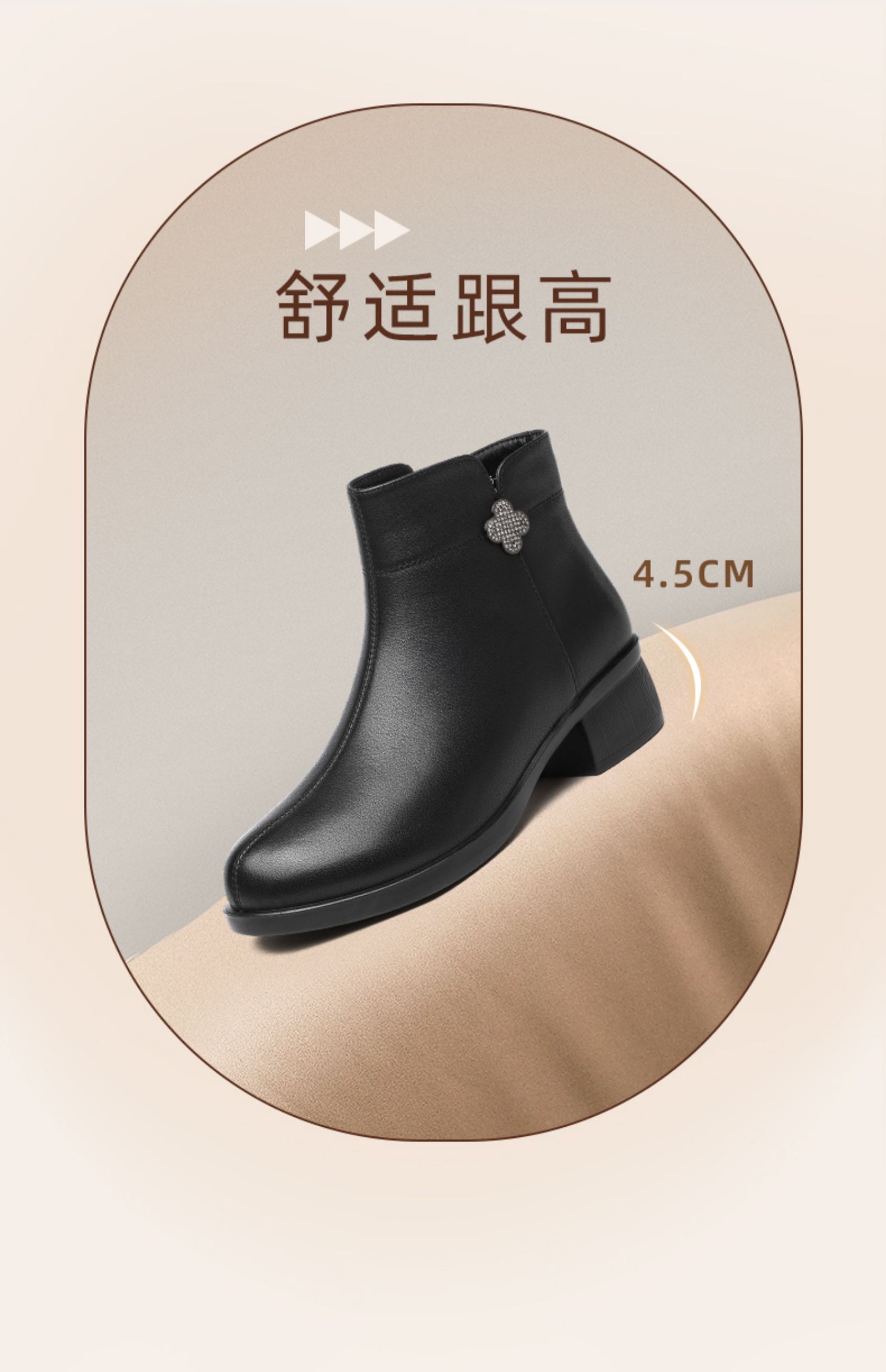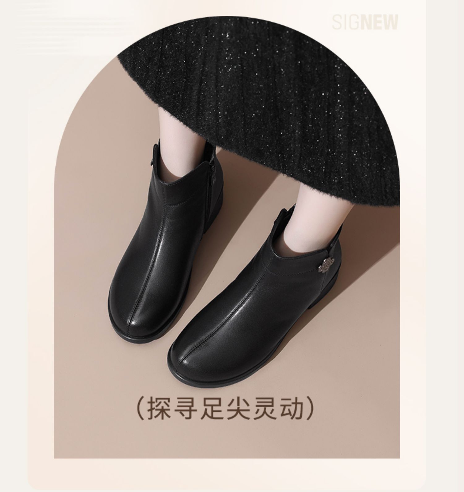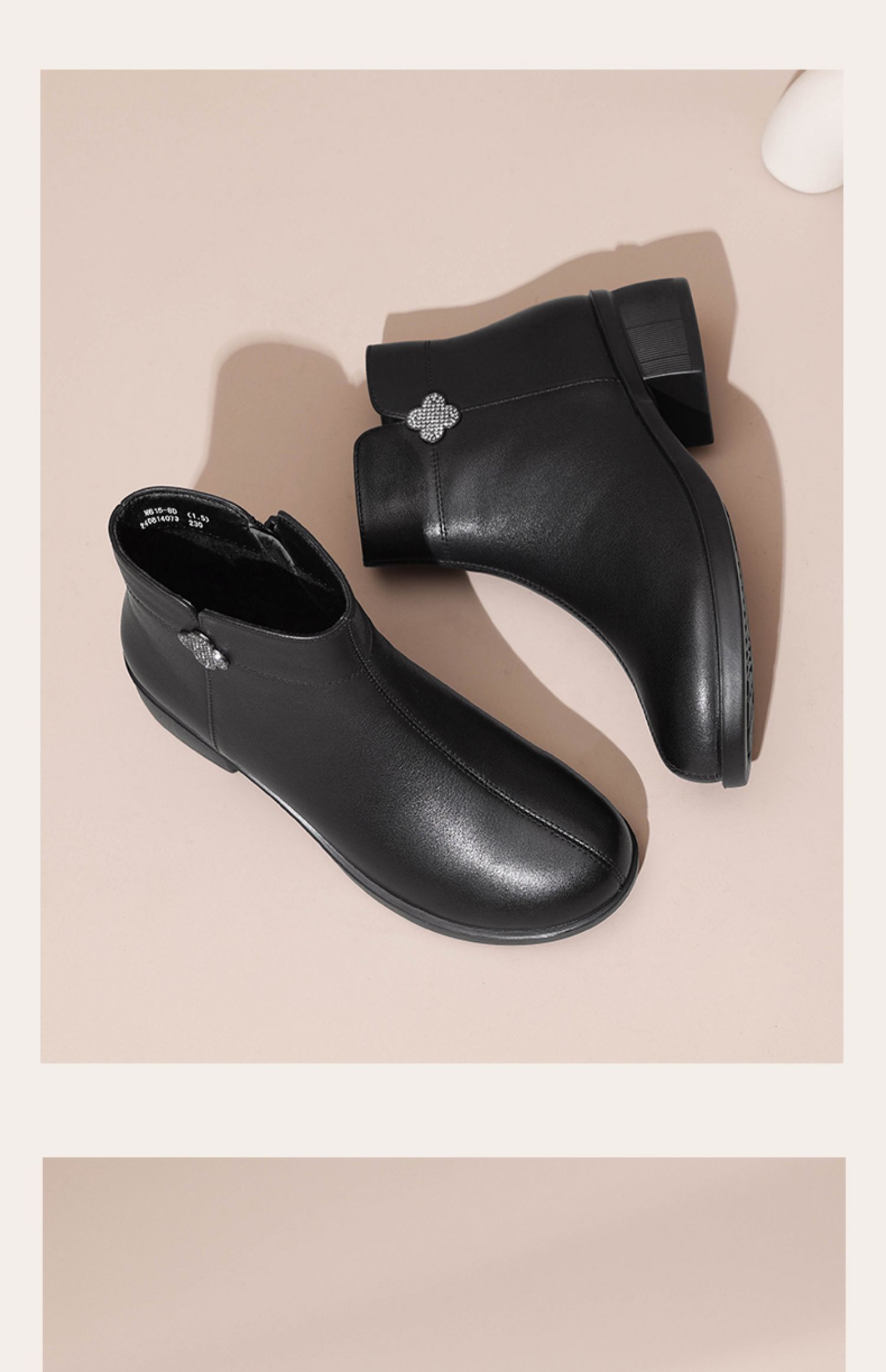信诺真皮时装女靴2024冬季新款粗跟短靴加绒舒适妈妈棉鞋短筒皮鞋M615-8D