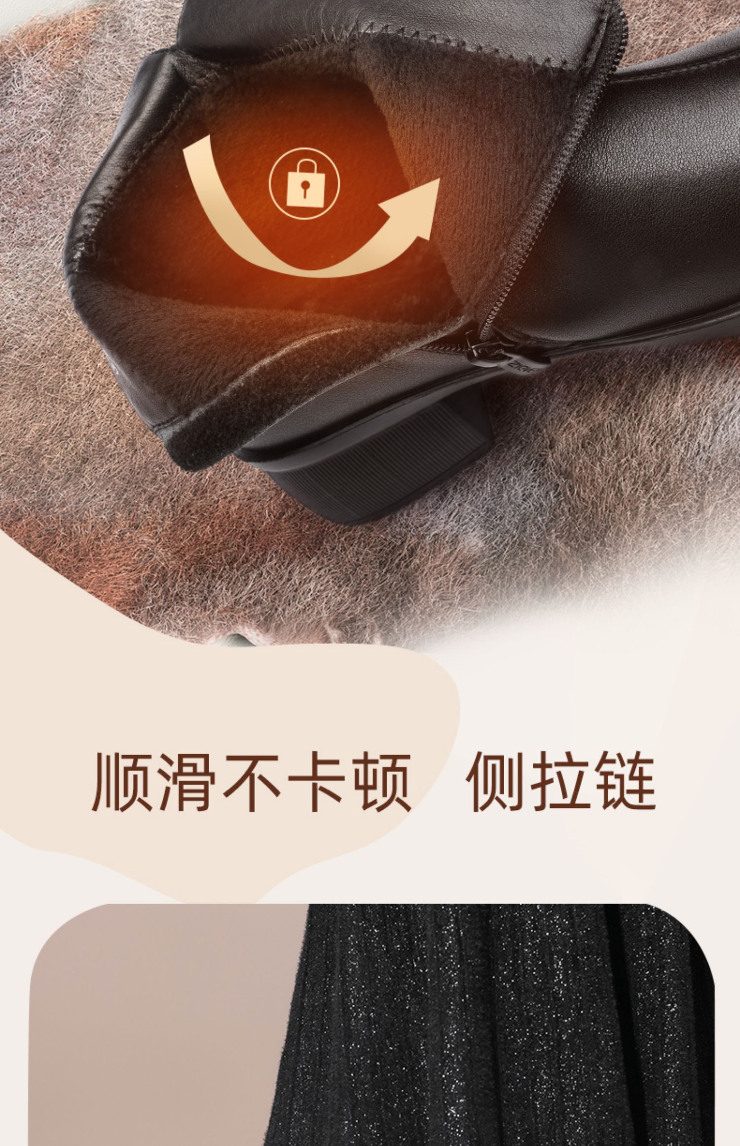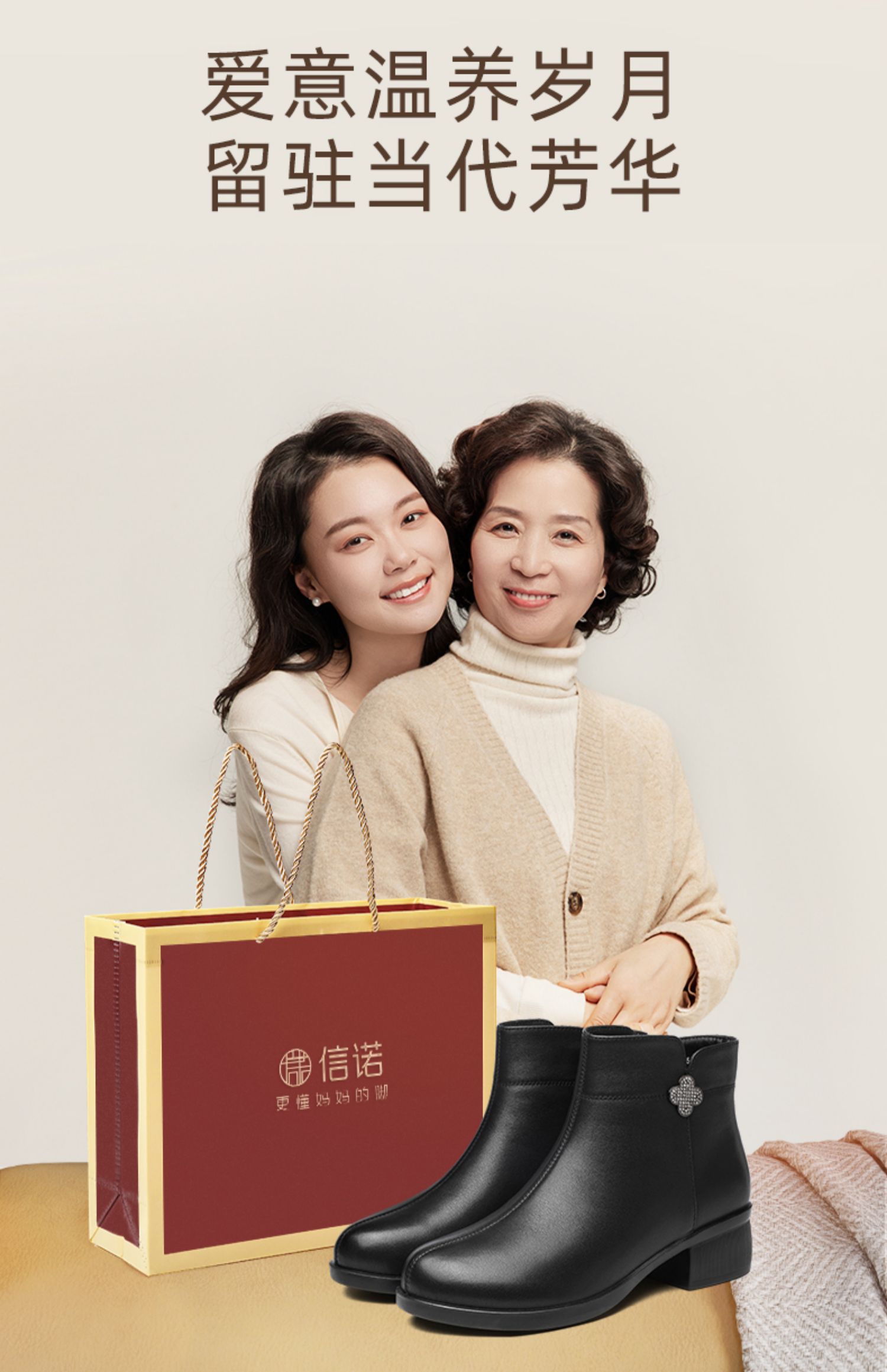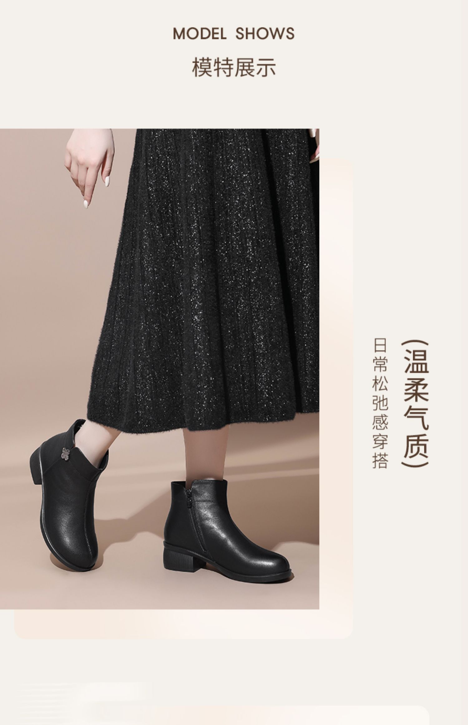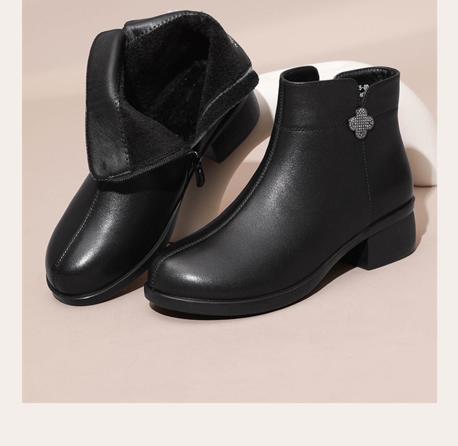 信诺真皮时装女靴2024冬季新款粗跟短靴加绒舒适妈妈棉鞋短筒皮鞋M615-8D