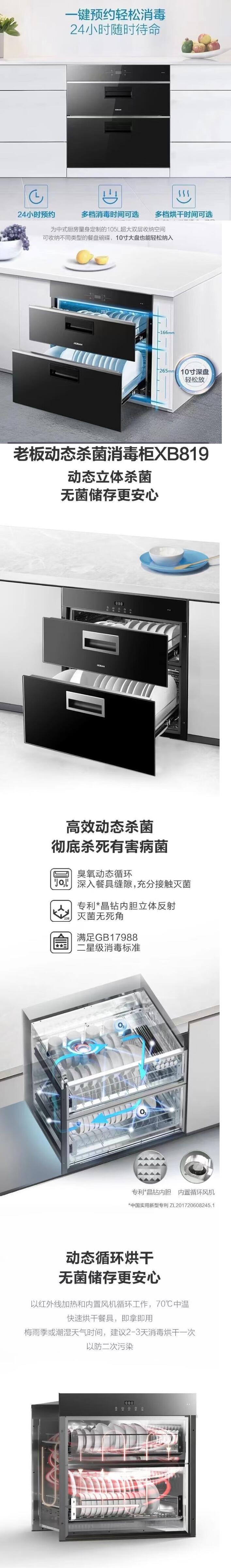 老板(510332) ROBAM家用智能动态立体除菌嵌入式双门XB819消毒柜 二星级 105L