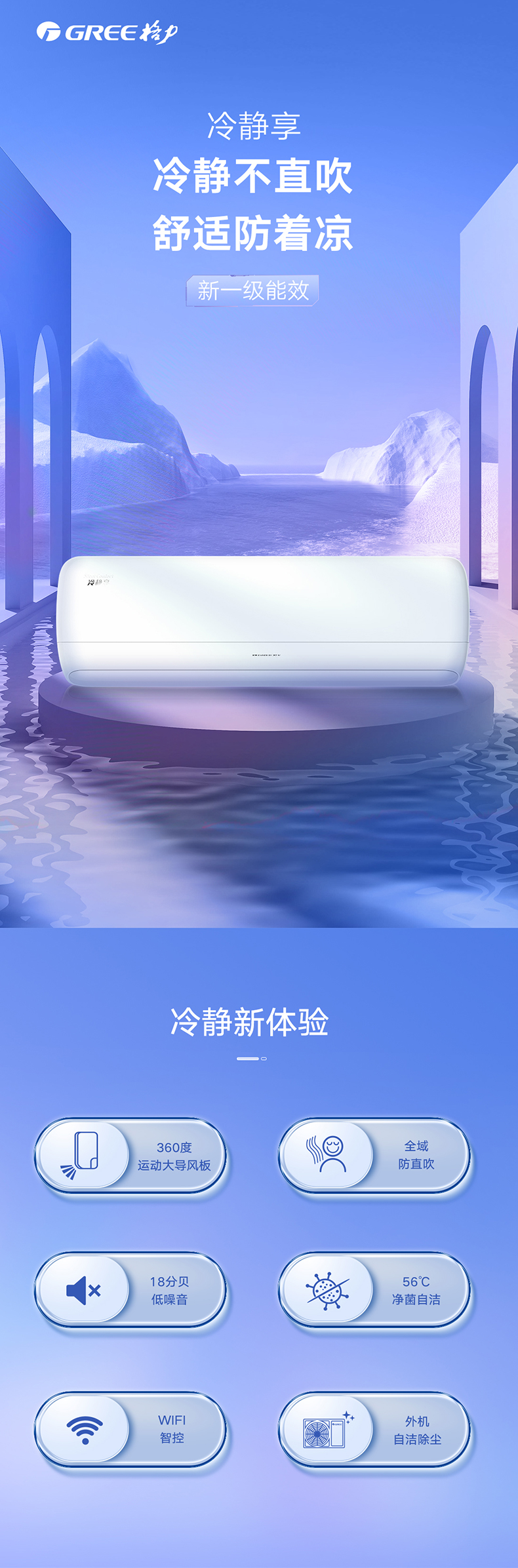 GREE格力 冷静享 大1匹/1.5匹 新一级能效 变频冷暖 挂机空调