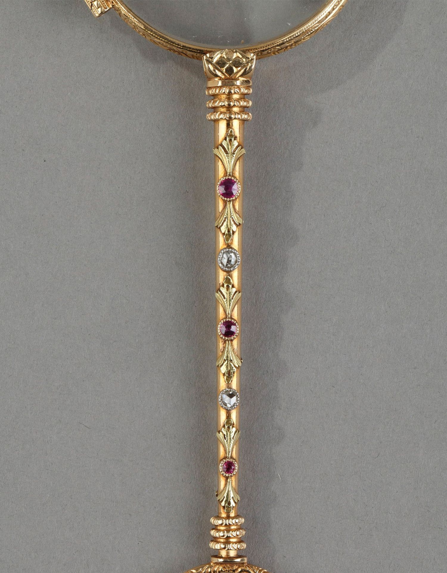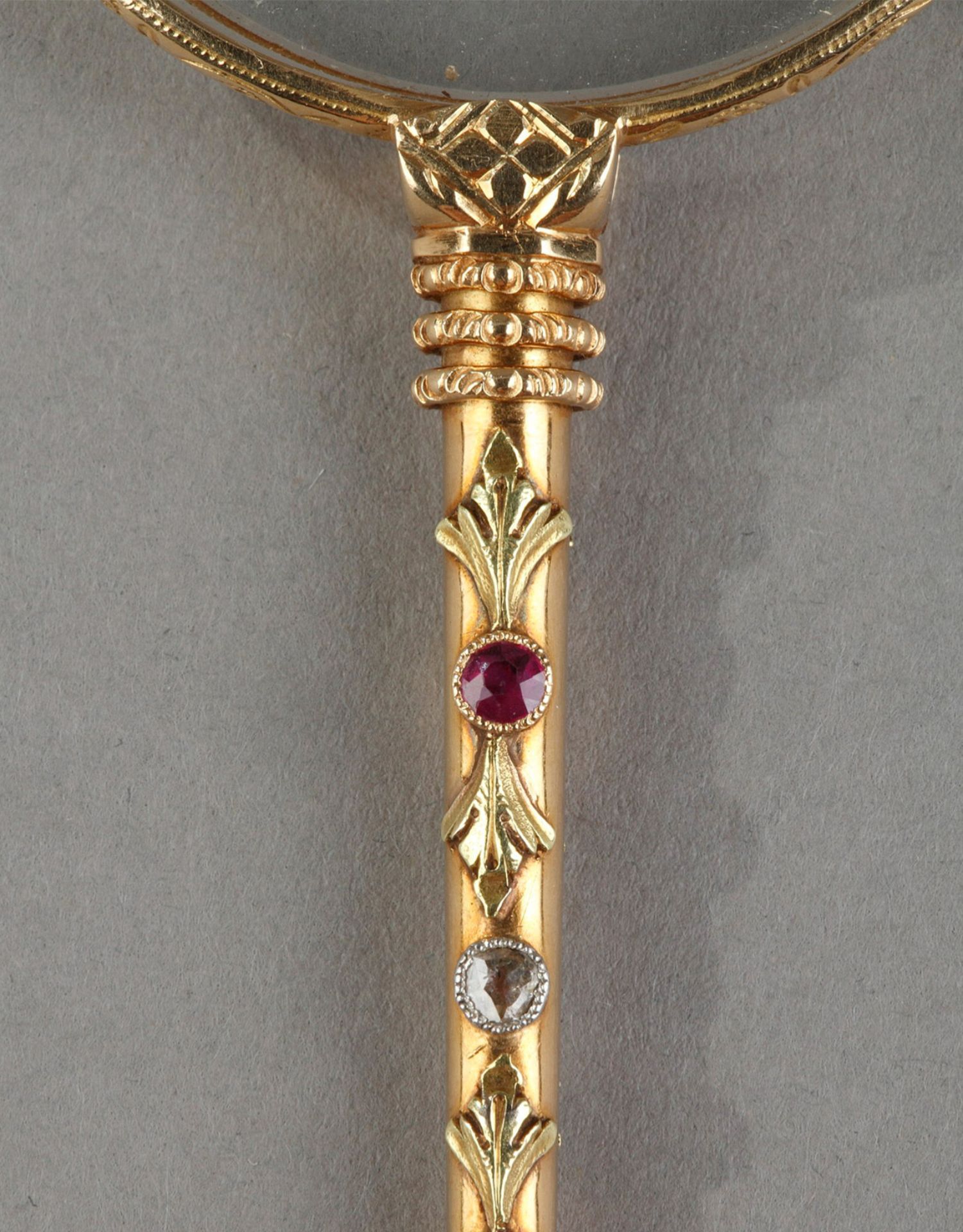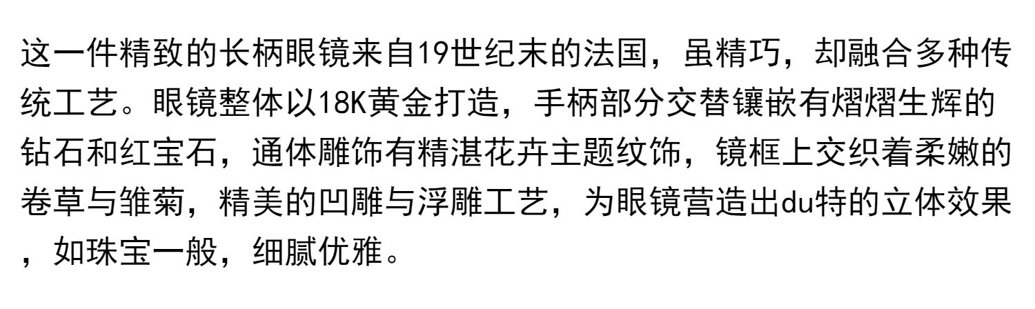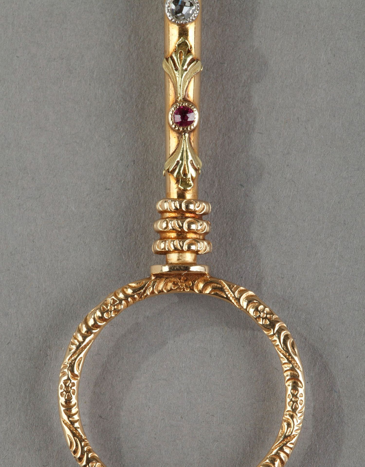 独角鹿西洋古董花卉精雕18k金镶嵌钻石红宝石可折叠手持长柄眼镜
