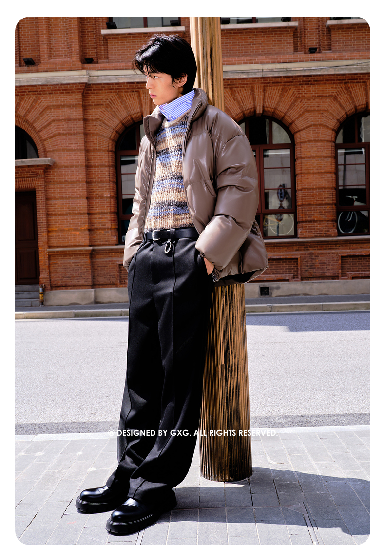 GXG男装 咖色宽松束脚裤透气男休闲裤 24年秋G24X023056