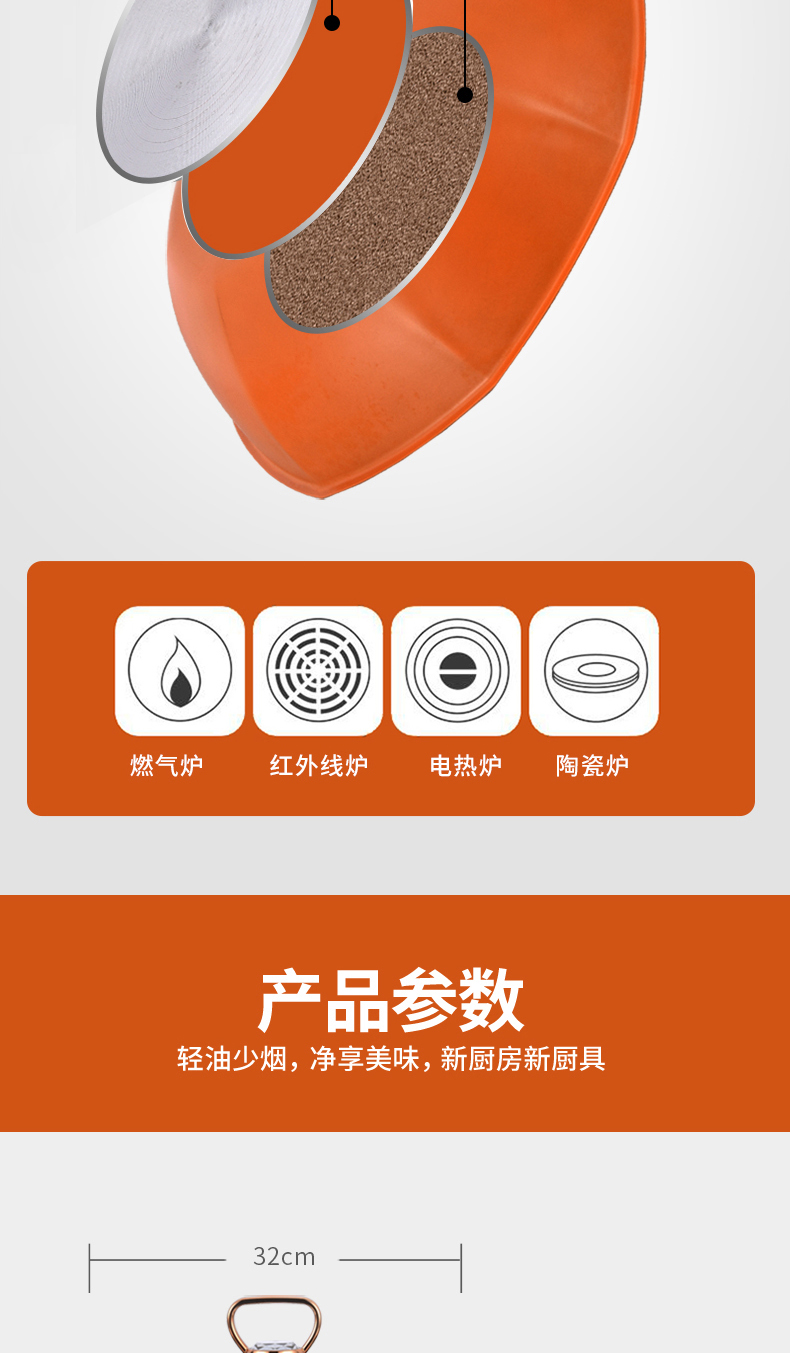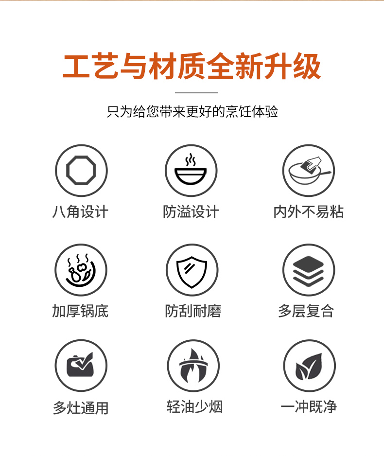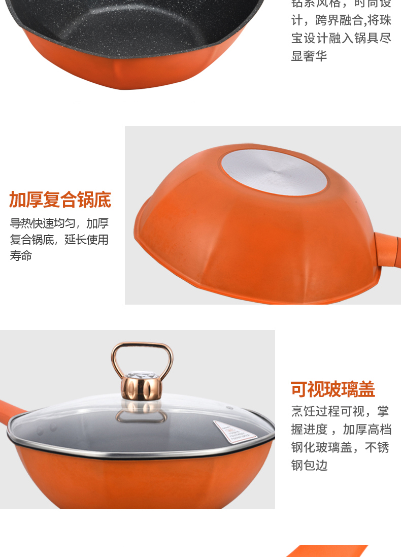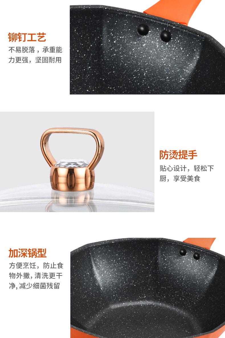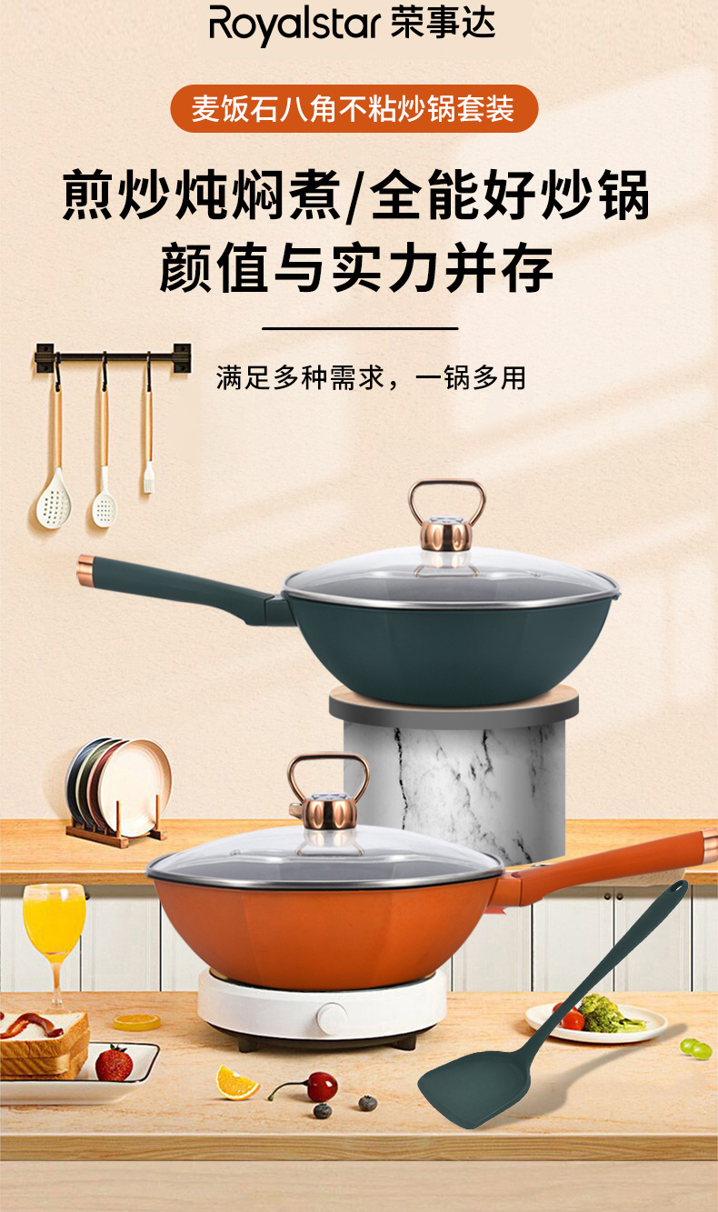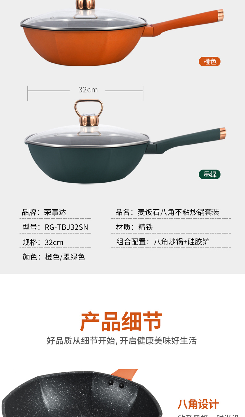 荣事达 麦饭石八角不粘炒锅套装(32cm)RG-TBJ32SN