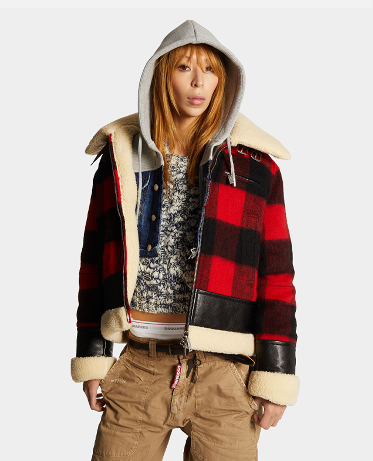 【二】DSQUARED2 女士羊毛飞行员夹克棉服 格子色 S75AM1065 S78290 001F