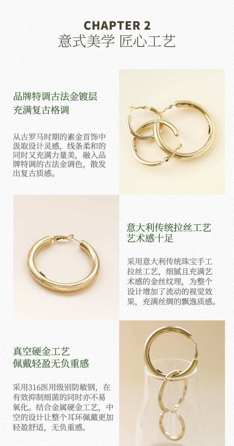 Retro Chic | 金丝耳圈&藤蔓蛇骨长链套装