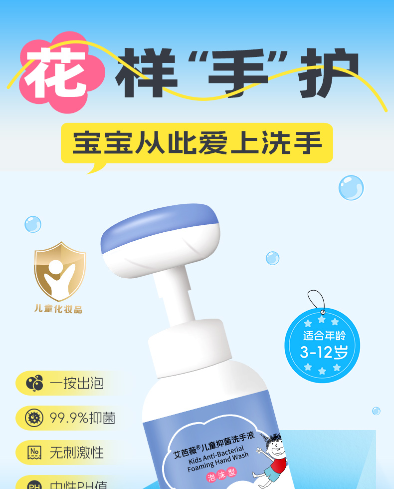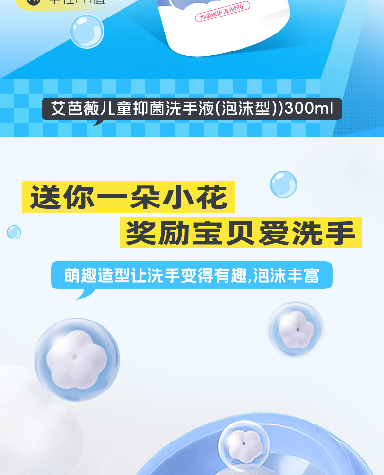 【多妈团购 艾芭薇儿童抑菌洗手液2瓶】一按就是一朵花,让娃爱上洗手,抑菌率达99.9%以上,一冲就干净,香香的,温和又不伤手(预售5天发)-杭州仓