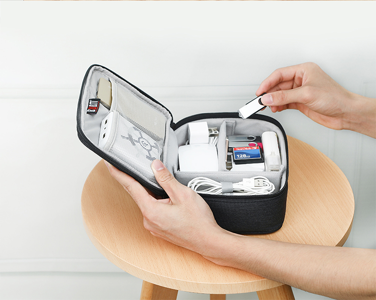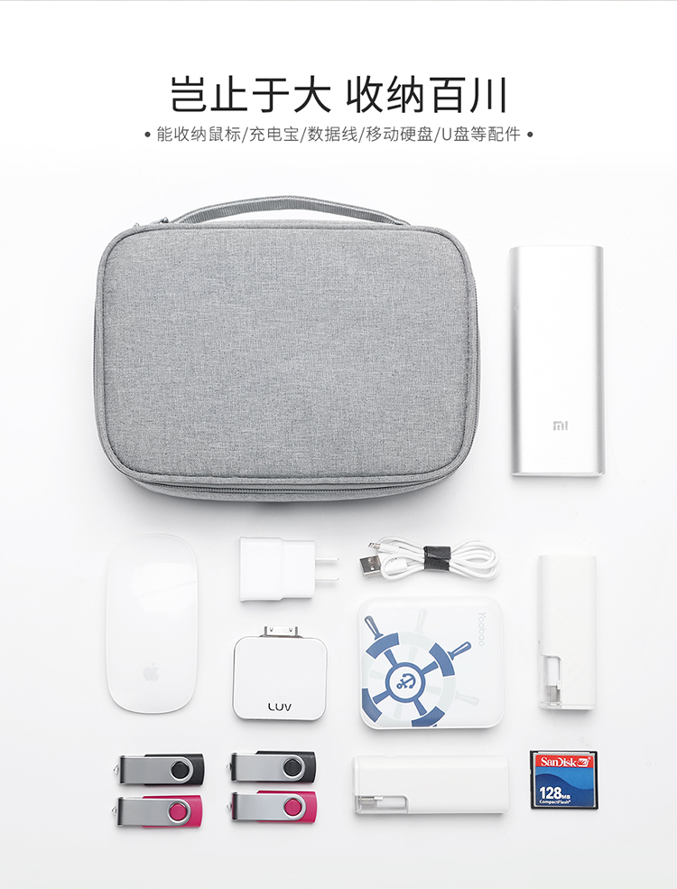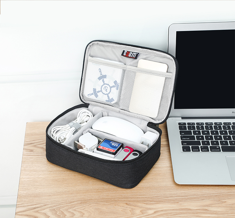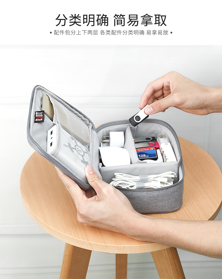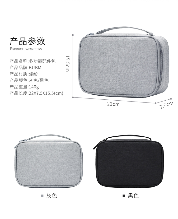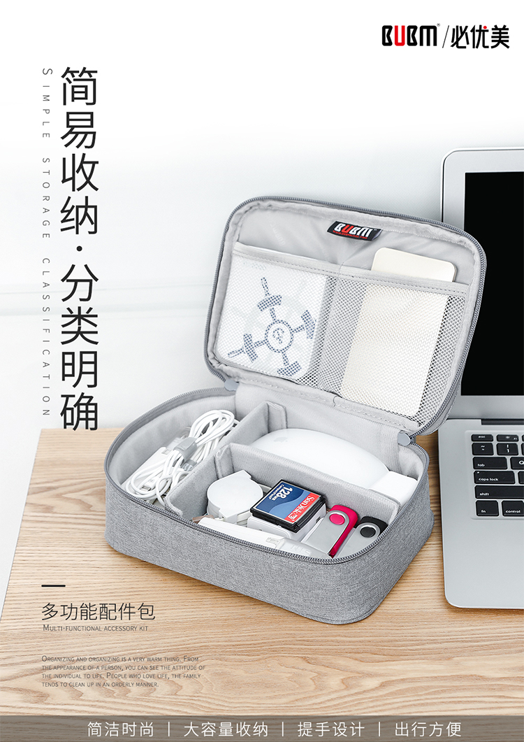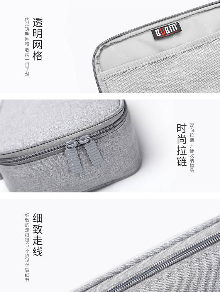 BUBM 数据线数码收纳包充电器鼠标便携袋防震线材配件包移动电源硬盘充电宝保护盒硬壳 DGS灰色小号