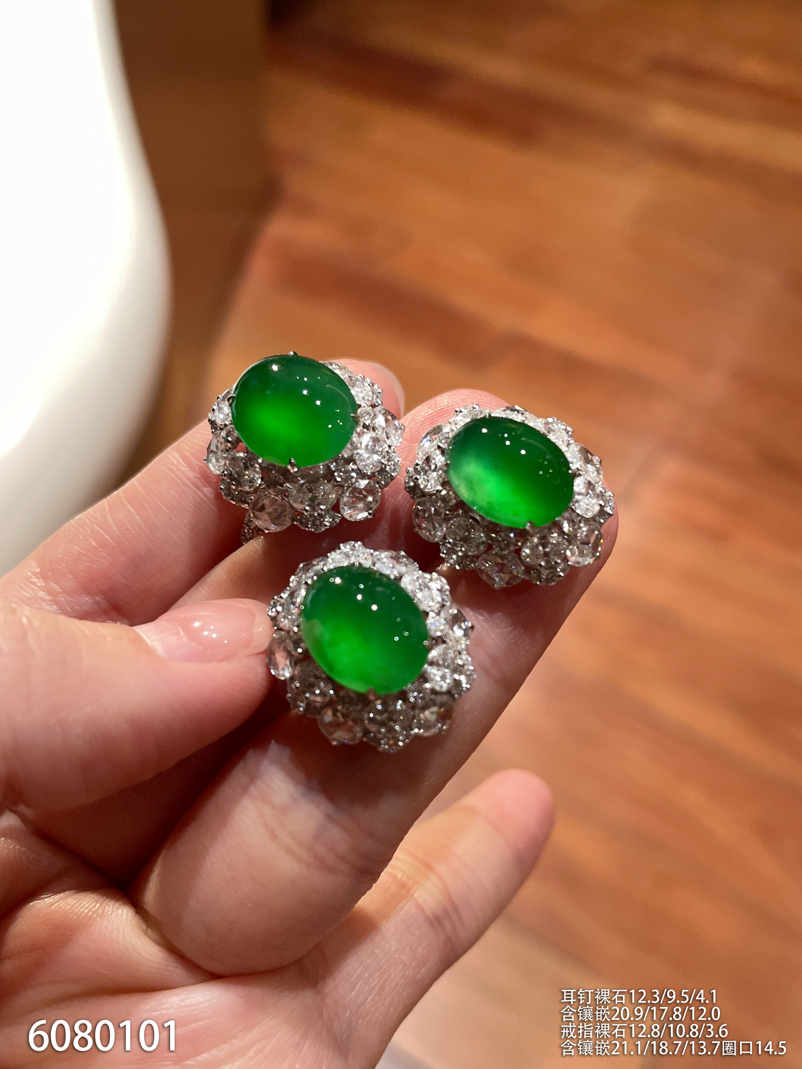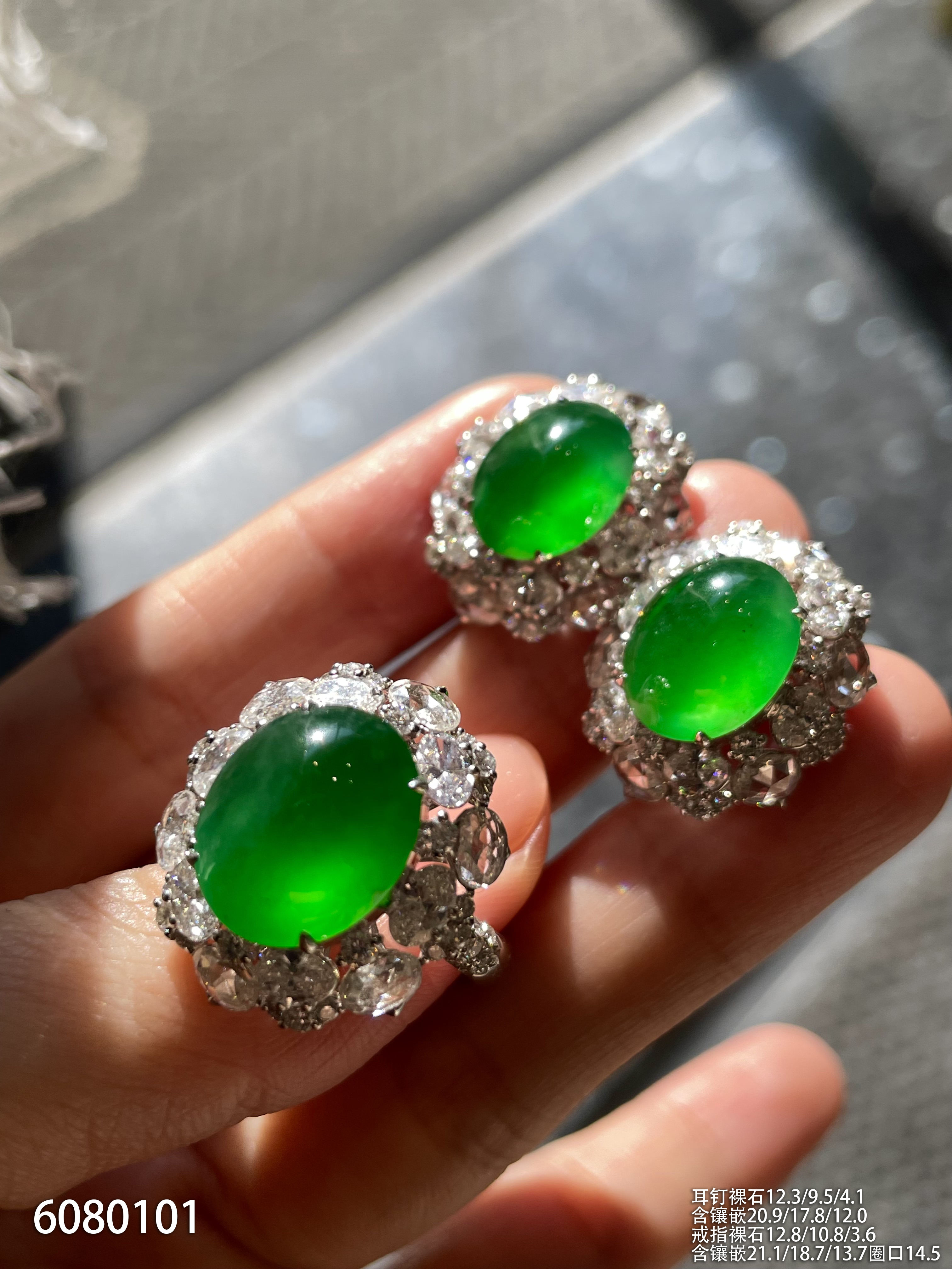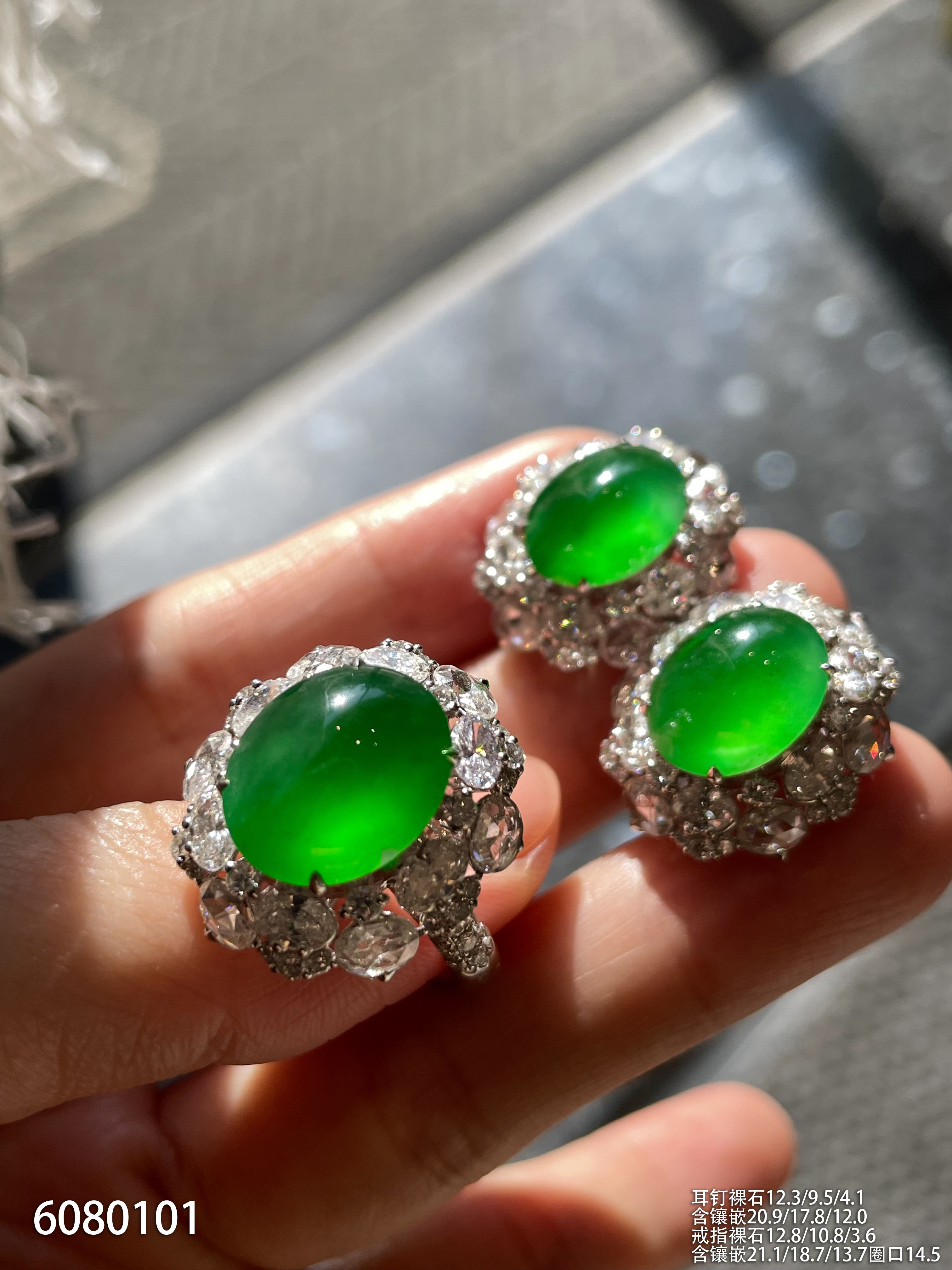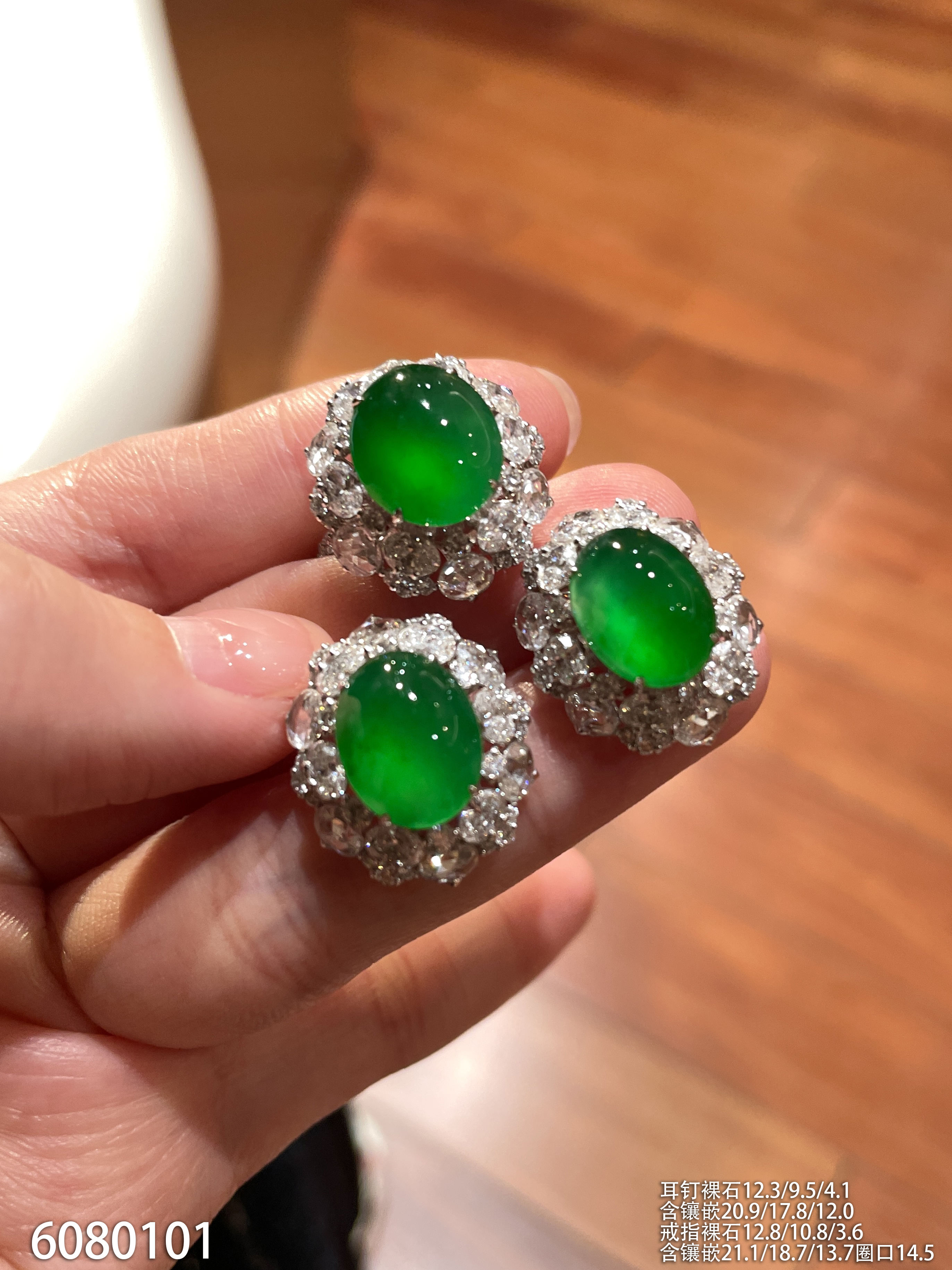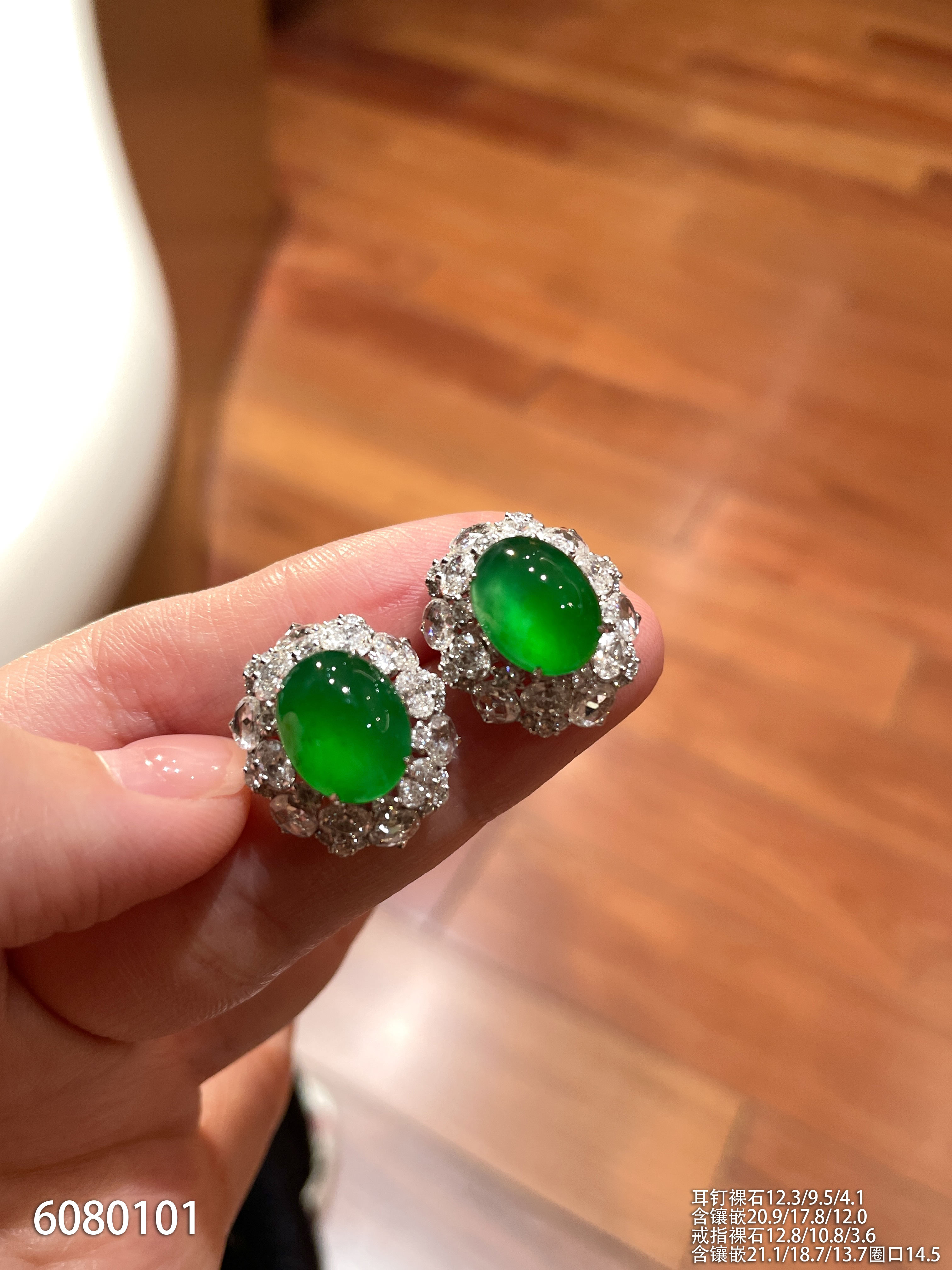 高冰种浓艳绿蛋面耳坠【6025704】具体价格微信咨询