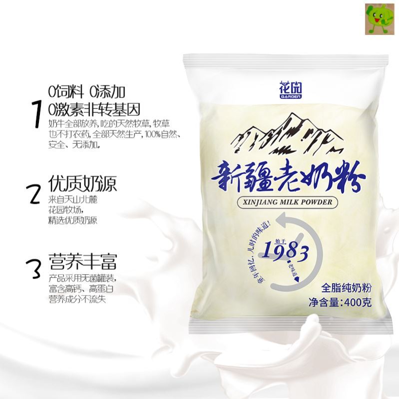 【花园新疆老奶粉 】 氮气包装,奶粉品质看得见! 高钙✅高蛋白✅ 粉质细腻,不腥不擅,易溶解,好冲泡!