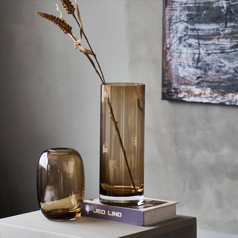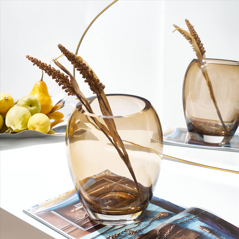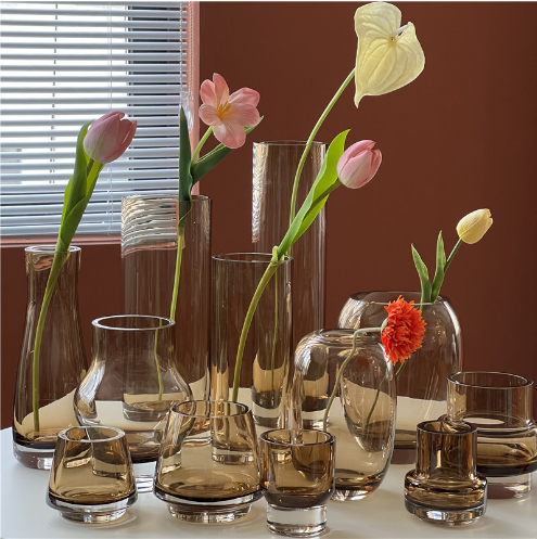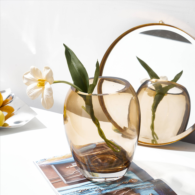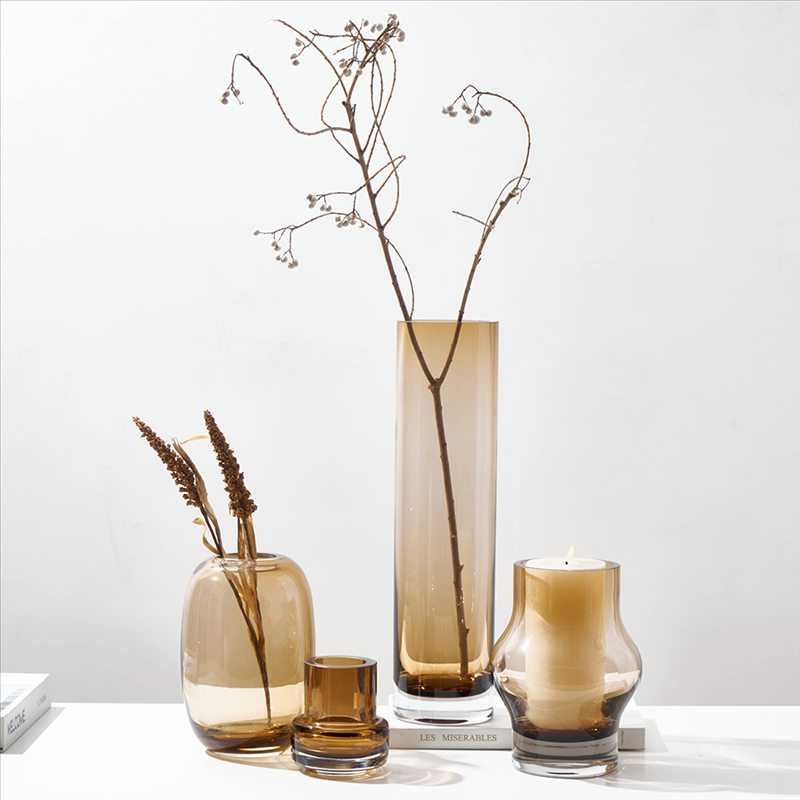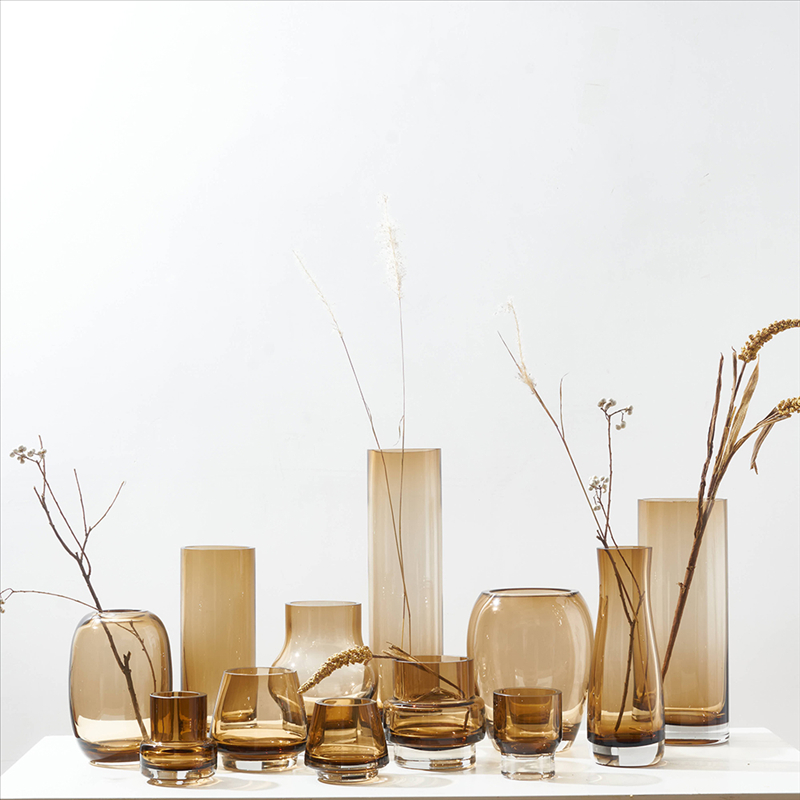 北欧ins风简约浅棕透明玻璃花瓶水培鲜花客厅酒店餐桌台面迷你瓶