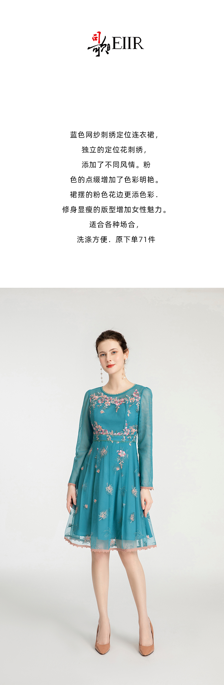 司歌刺绣国风长袖连衣裙圆领端庄优雅A881240
