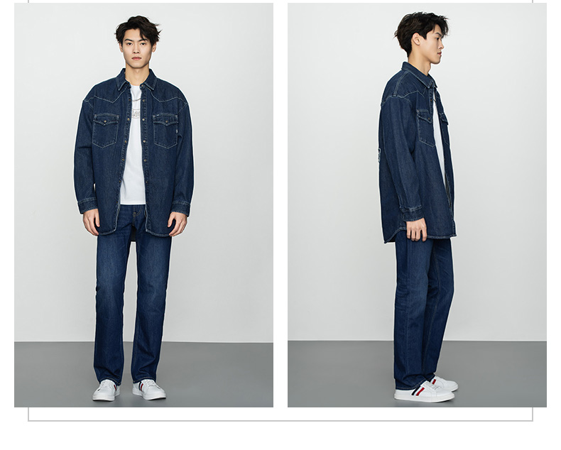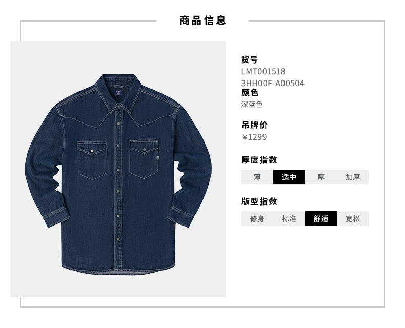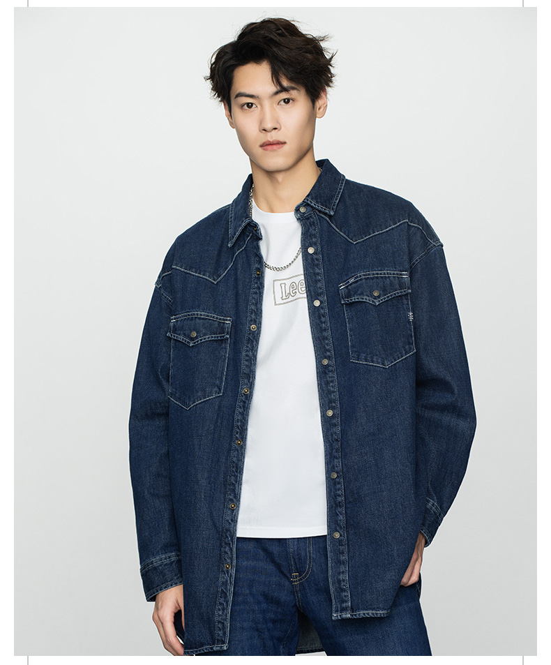 Lee商场同款22春季新品舒适版深蓝色男牛仔衬衫LMT0015183HH-504