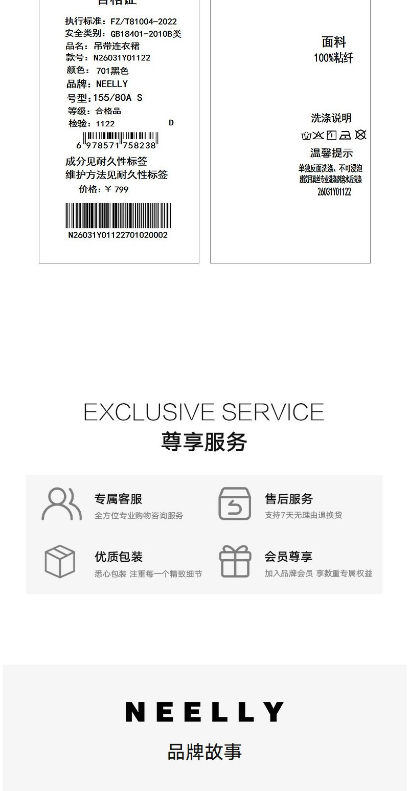 NEELLY纳俪商场同款春季新款时尚简约吊带长裙女显瘦休闲叠穿长裙N26031Y01122
