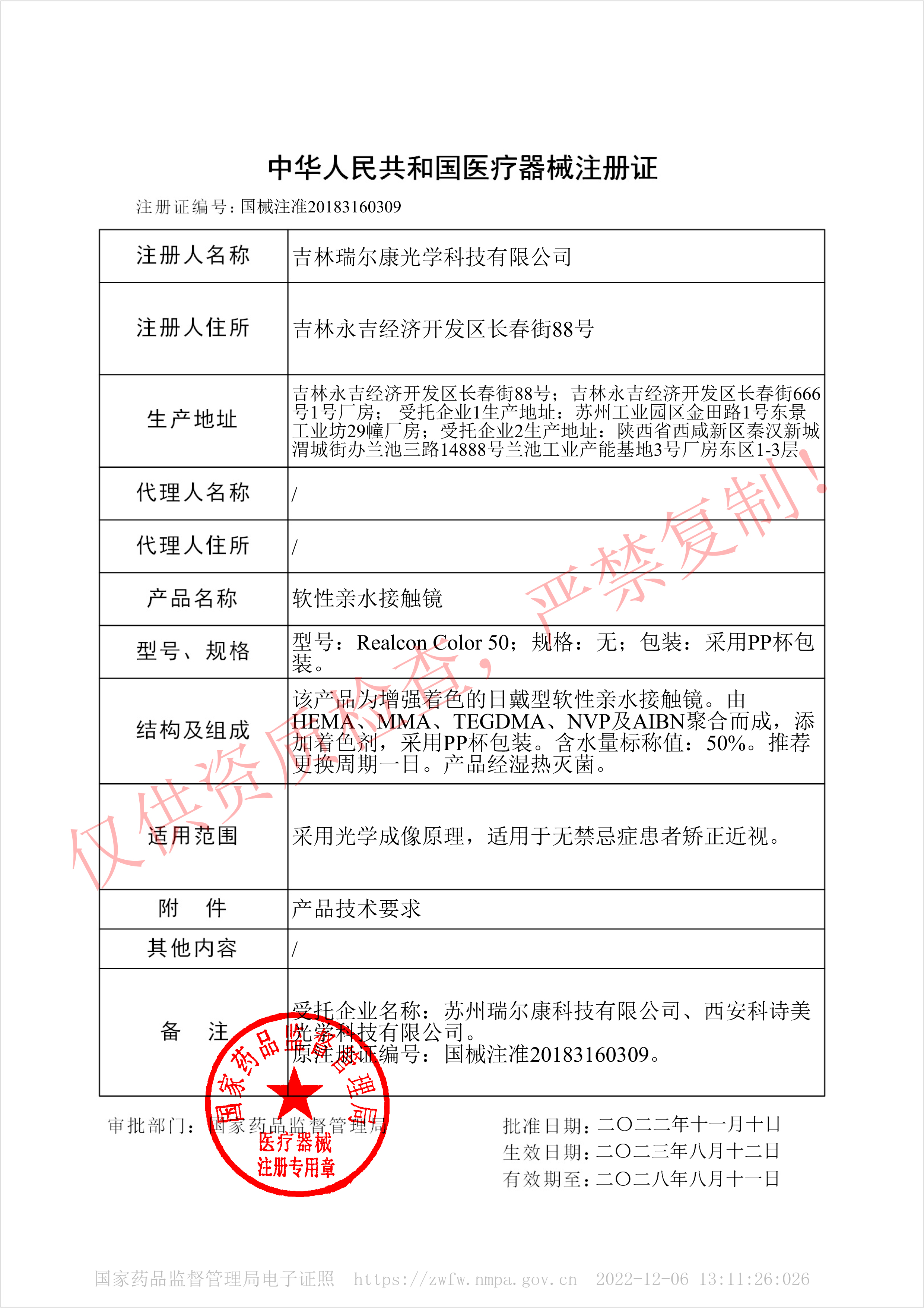 注册证号:国械注准20183160309