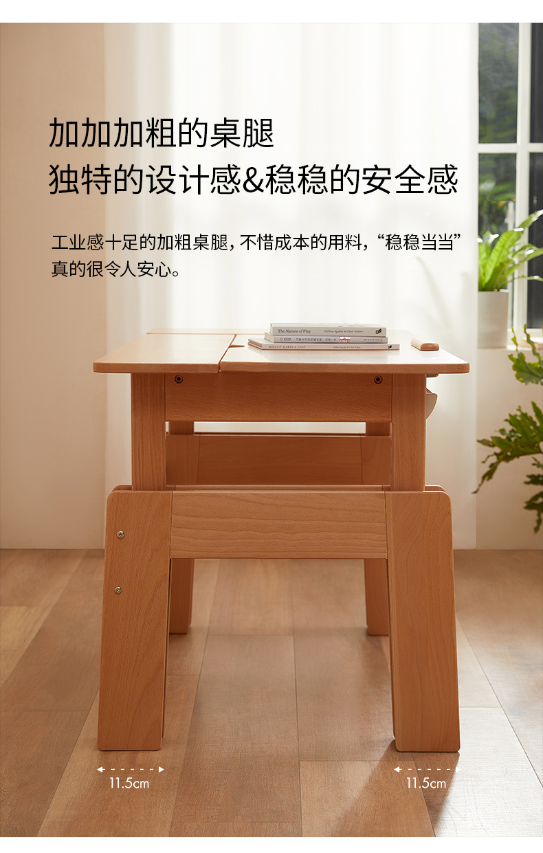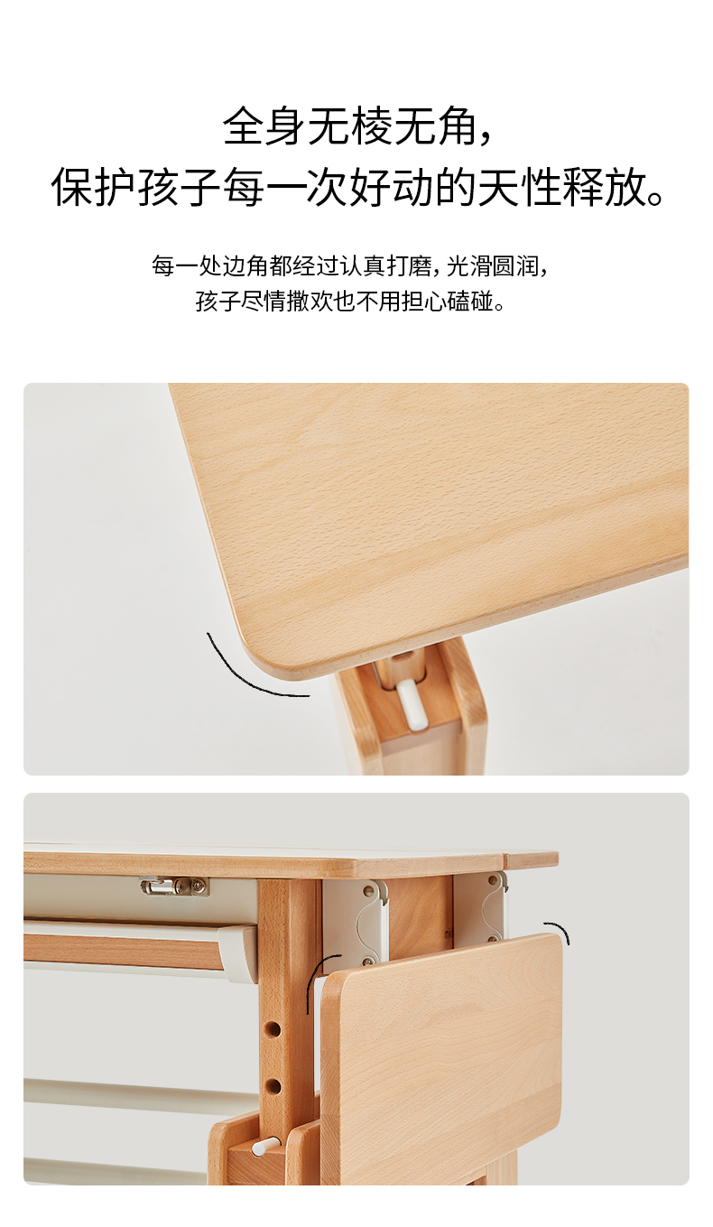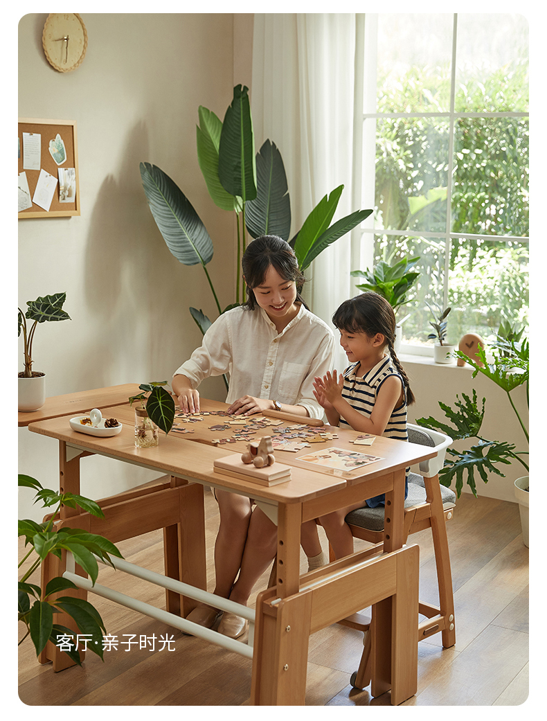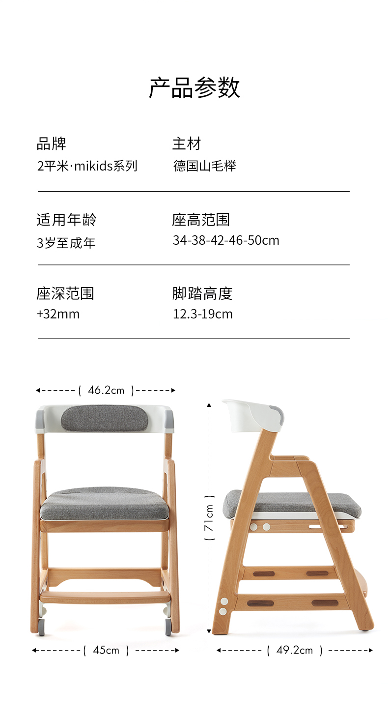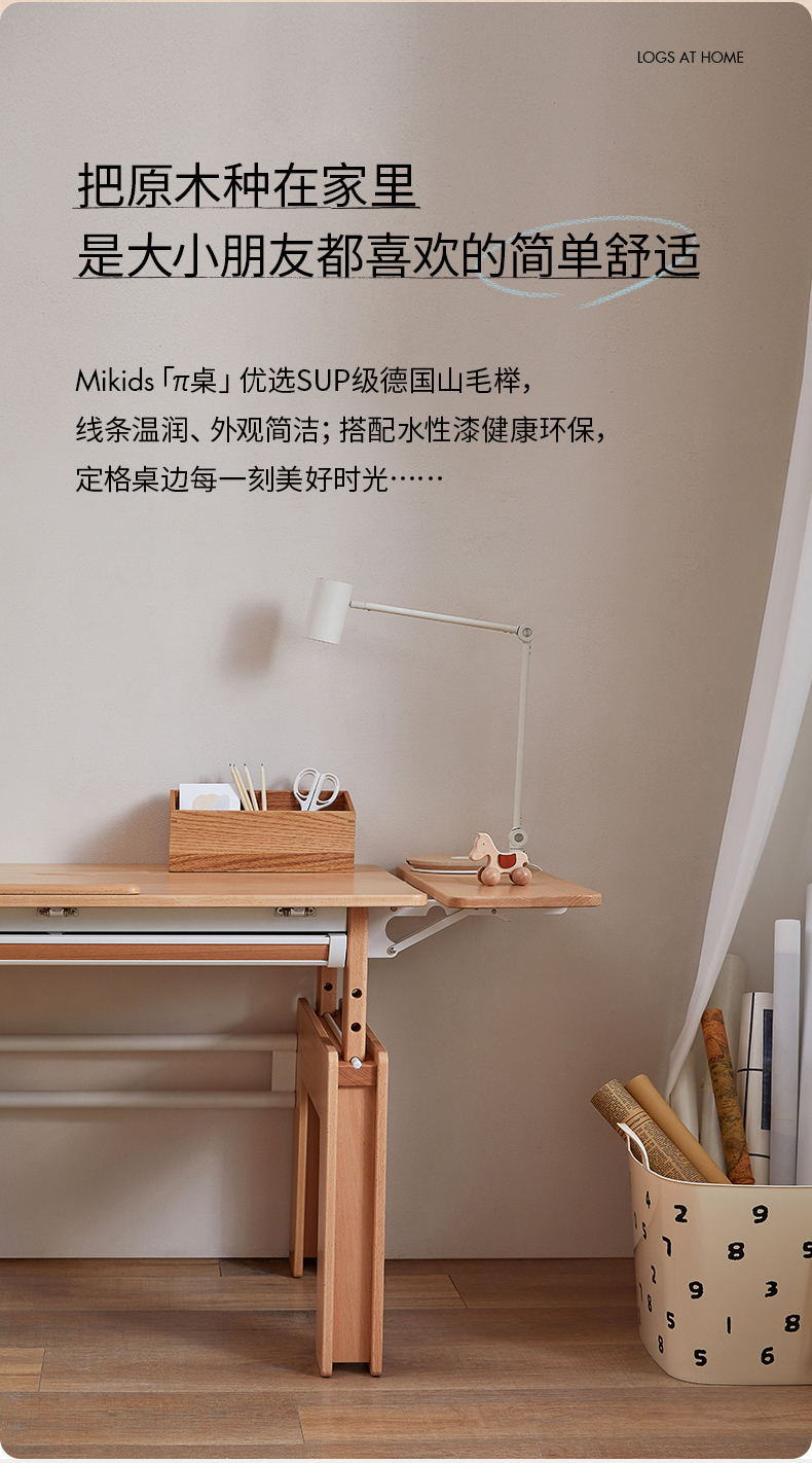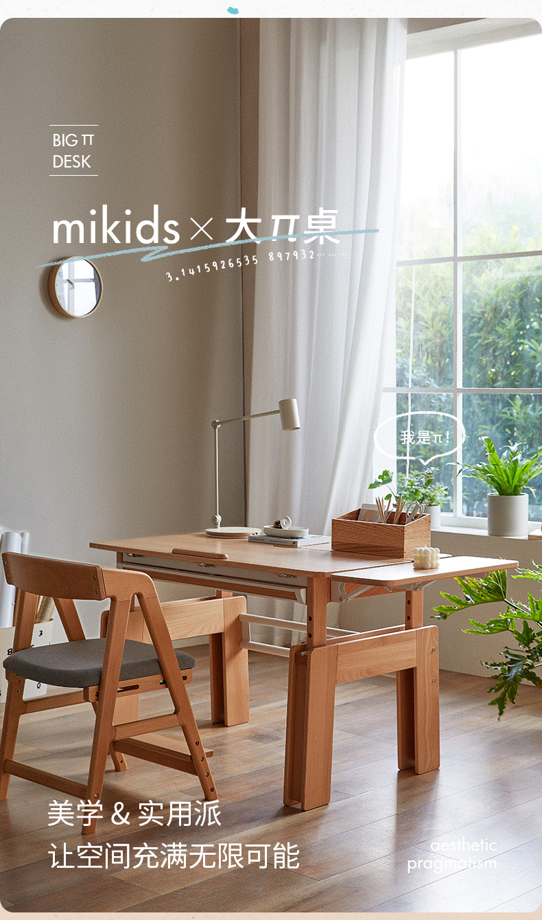 2平米mikids系列儿童学习桌纯实木德国进口榉木可升降桌椅套装