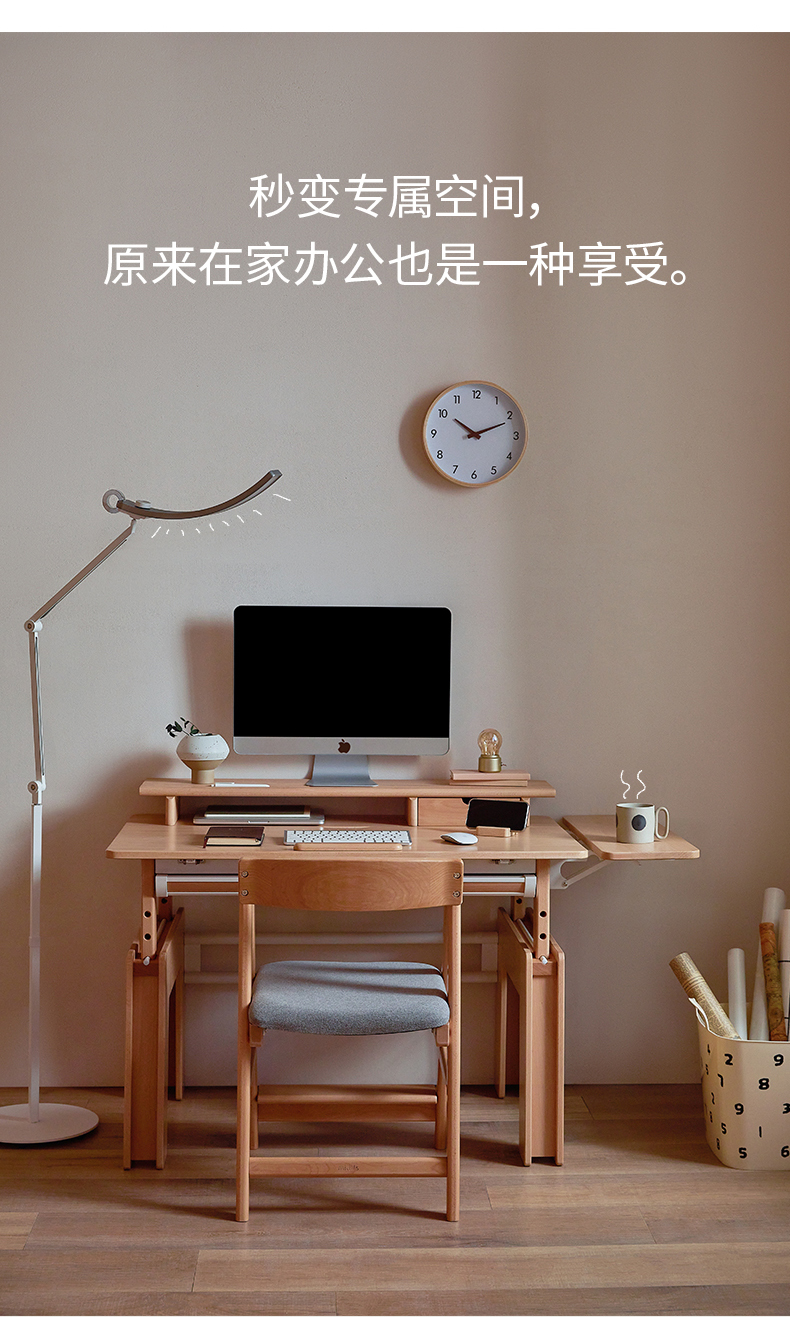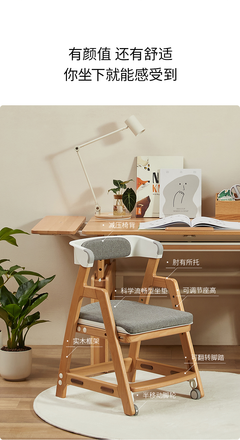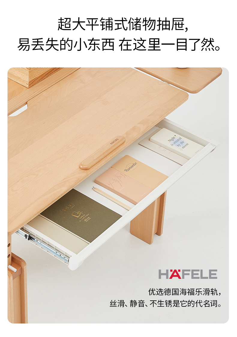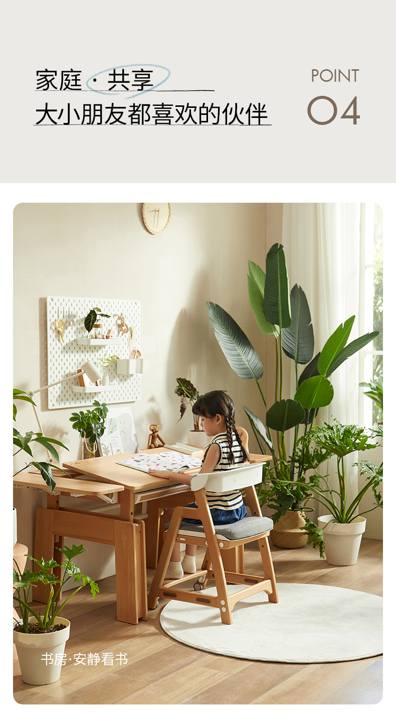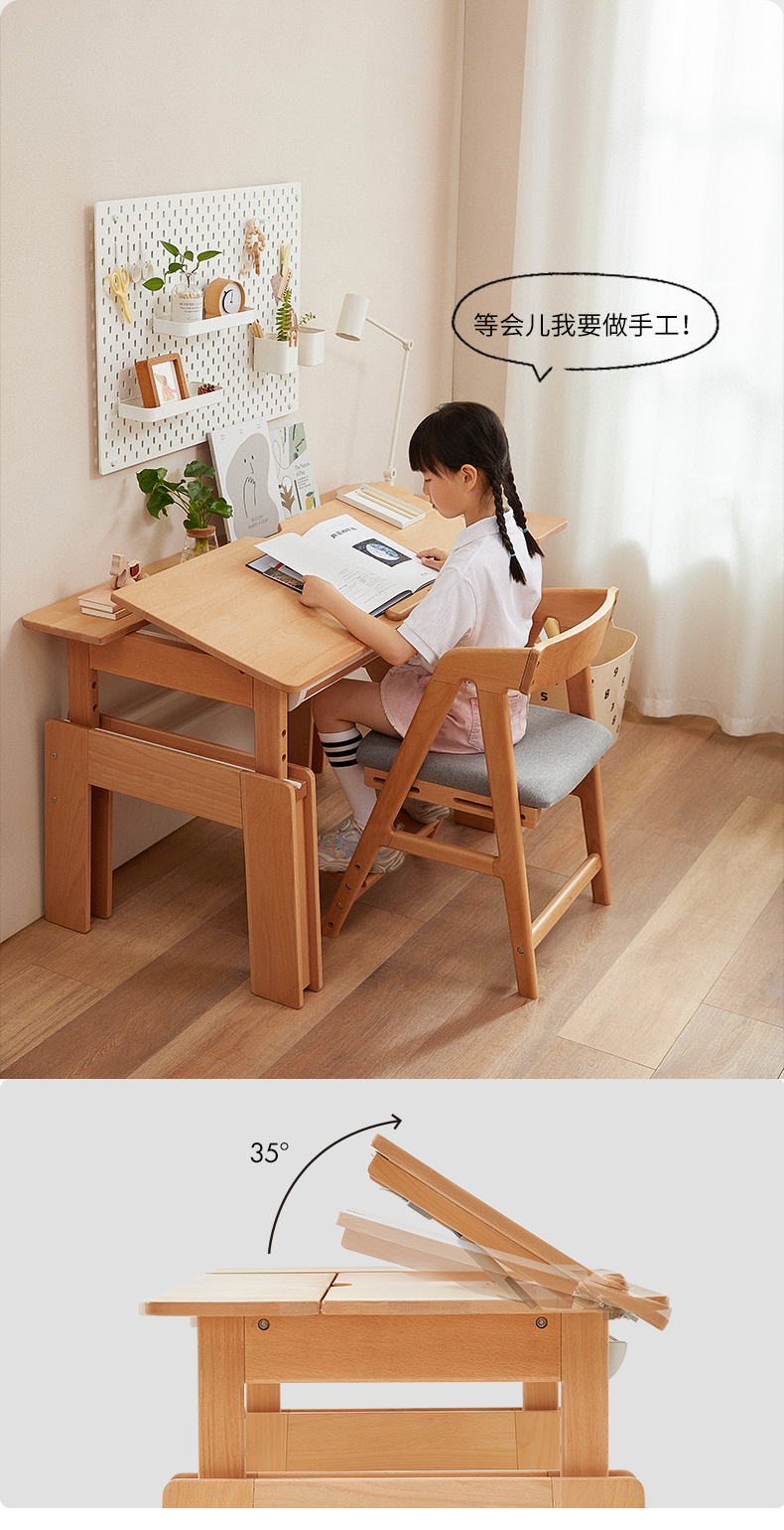 2平米mikids系列儿童学习桌纯实木德国进口榉木可升降桌椅套装