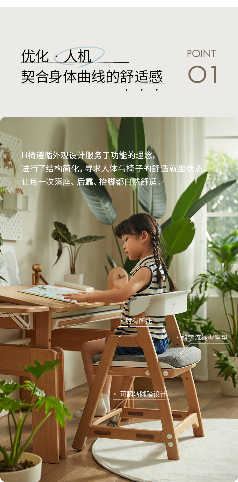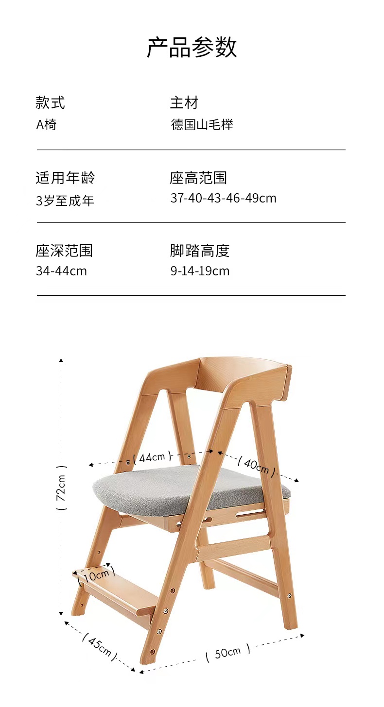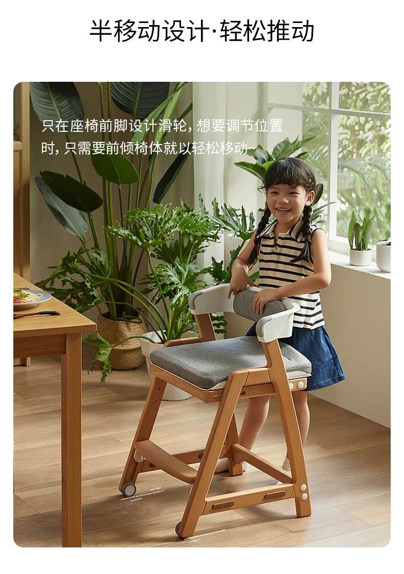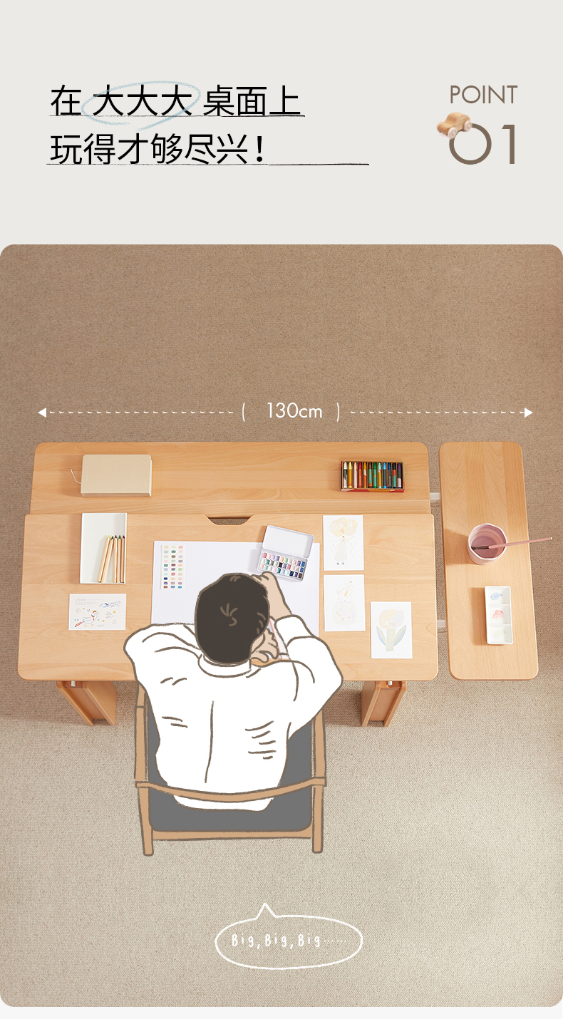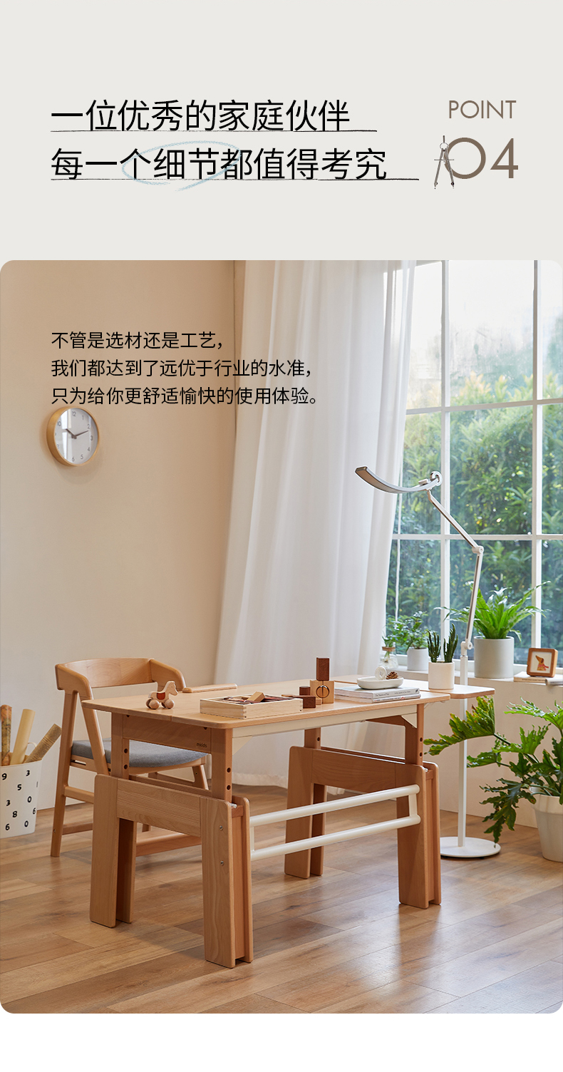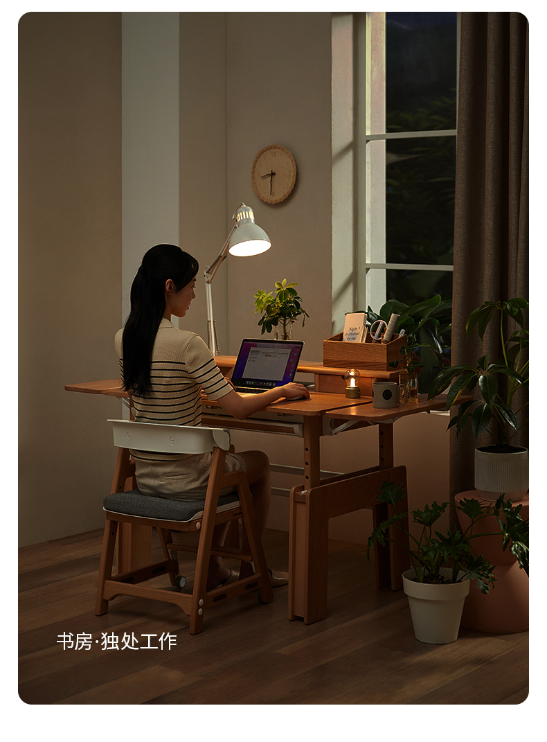 2平米mikids系列儿童学习桌纯实木德国进口榉木可升降桌椅套装