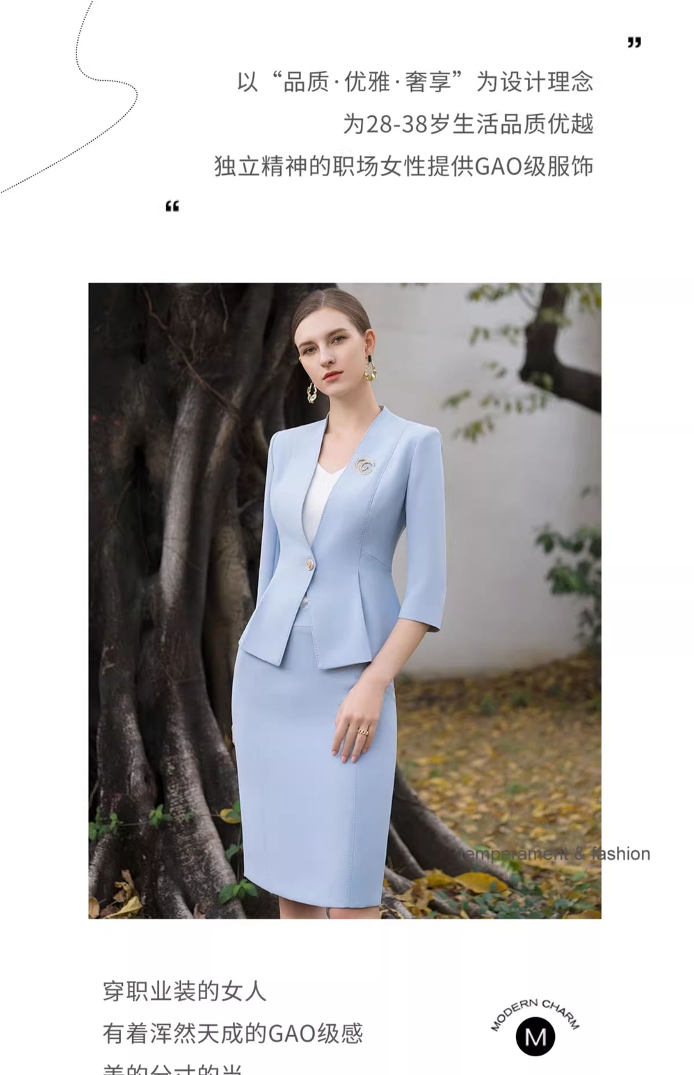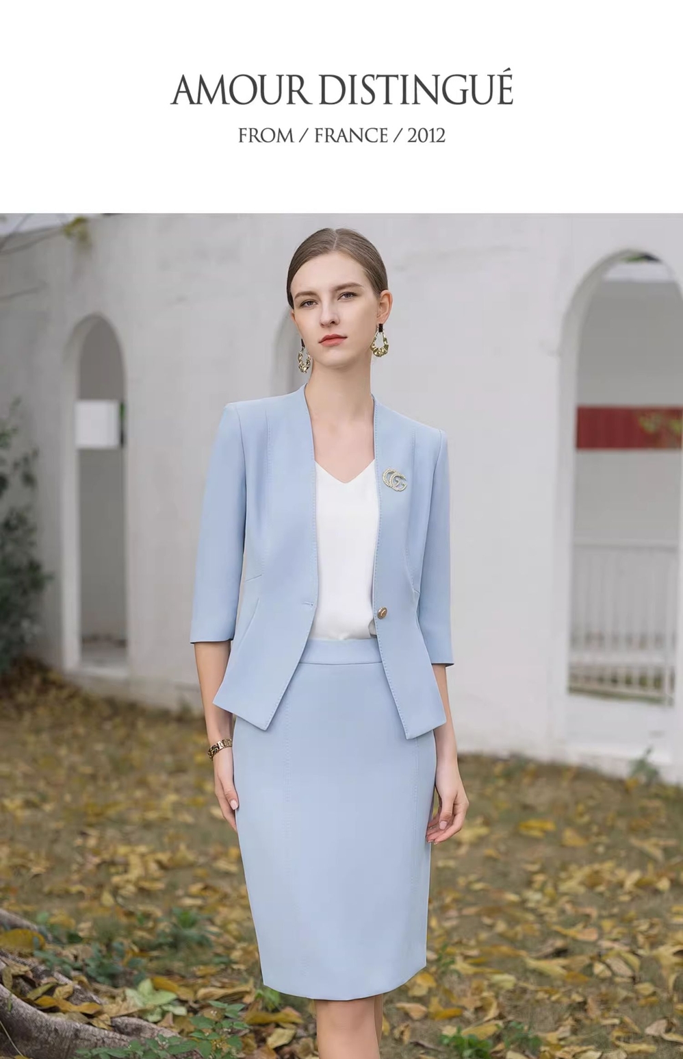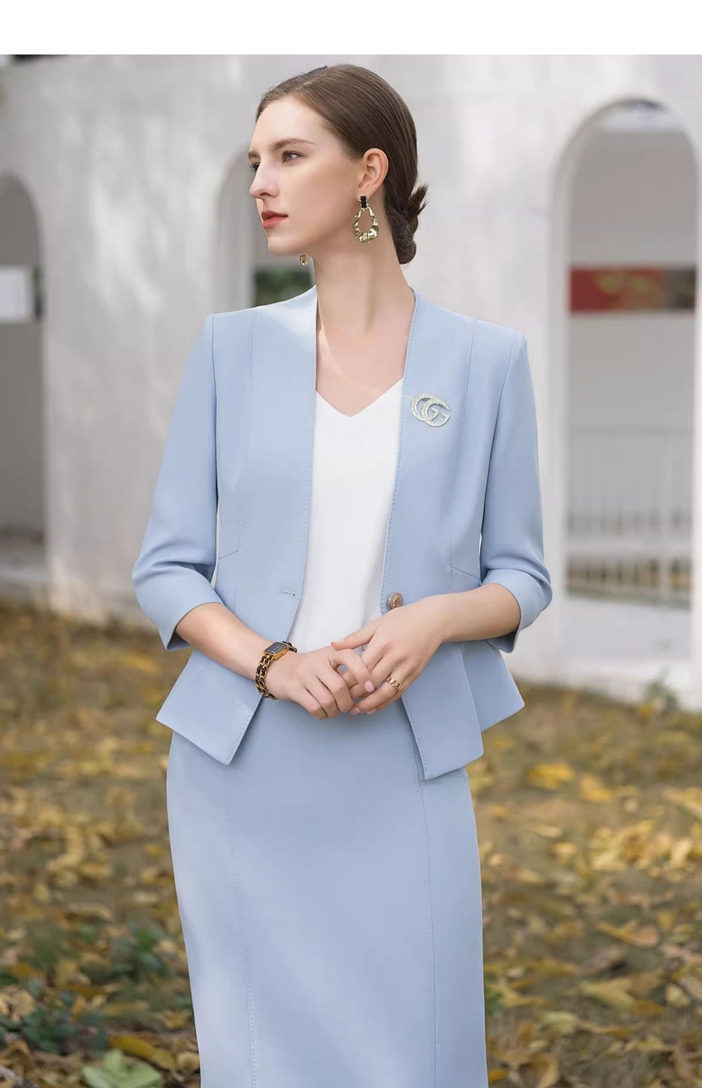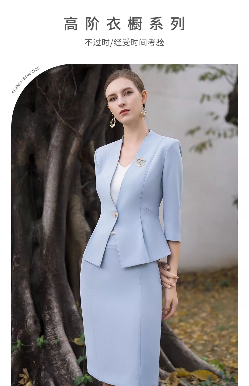 IWY/蓝色西装半裙职业女裙套装夏季小香风七分袖优雅工作服CS1986