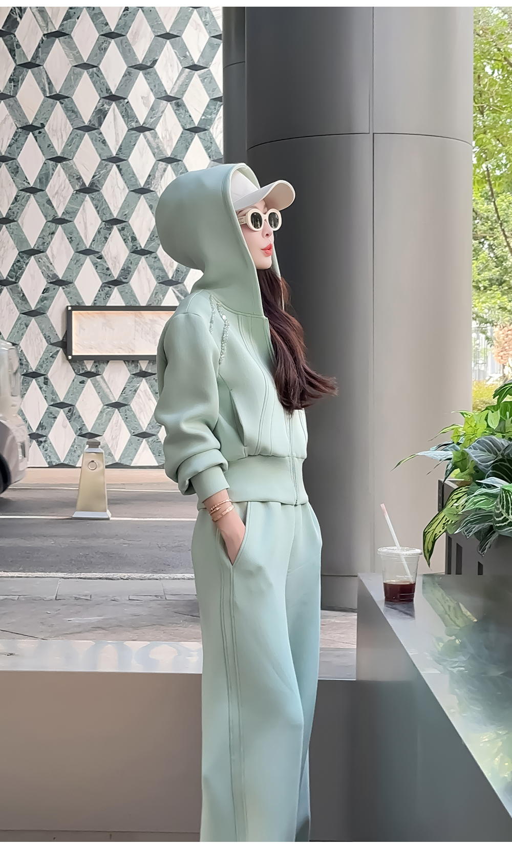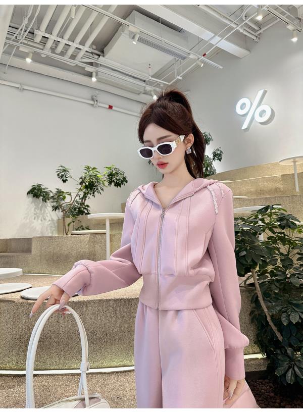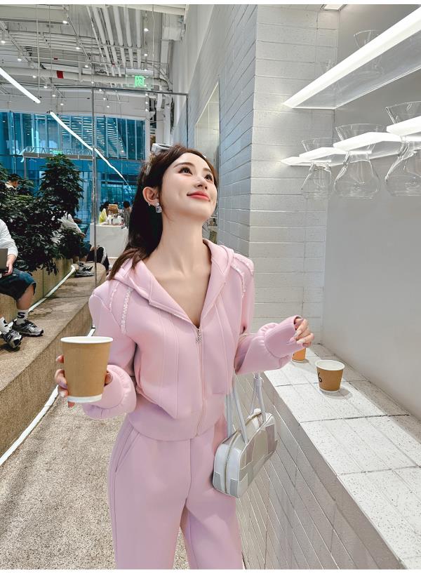 BeQueenStory【动感千金】减龄手工短款连帽外套&显瘦长裤套装