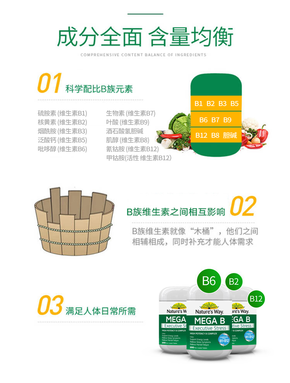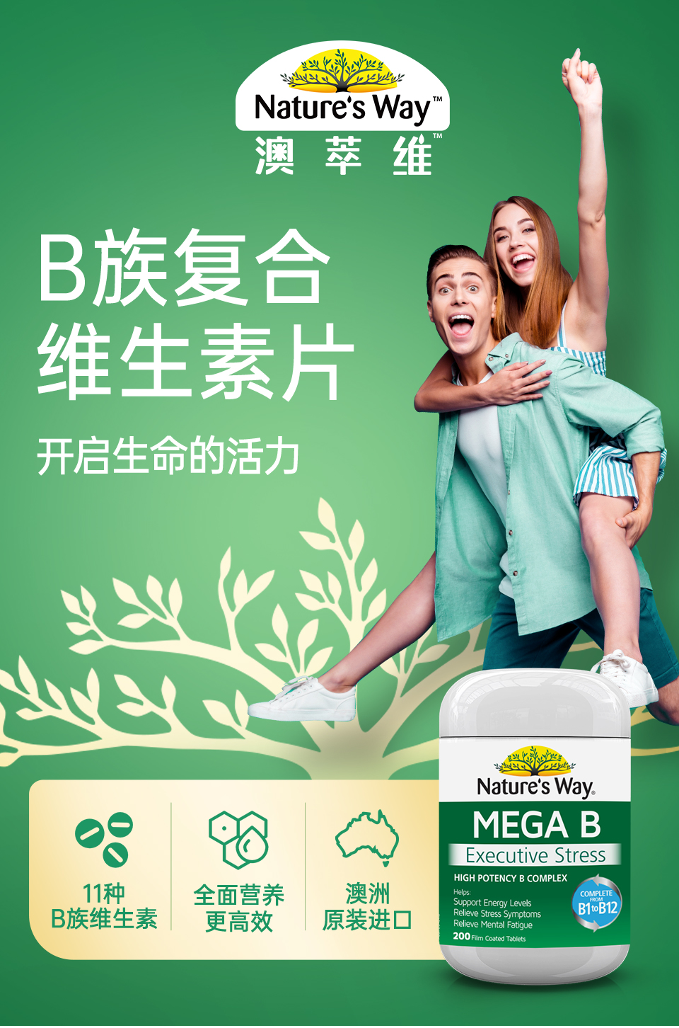 佳思敏(Nature's Way)澳萃维 复 合 维生素B族片 200粒/瓶 澳洲进口
